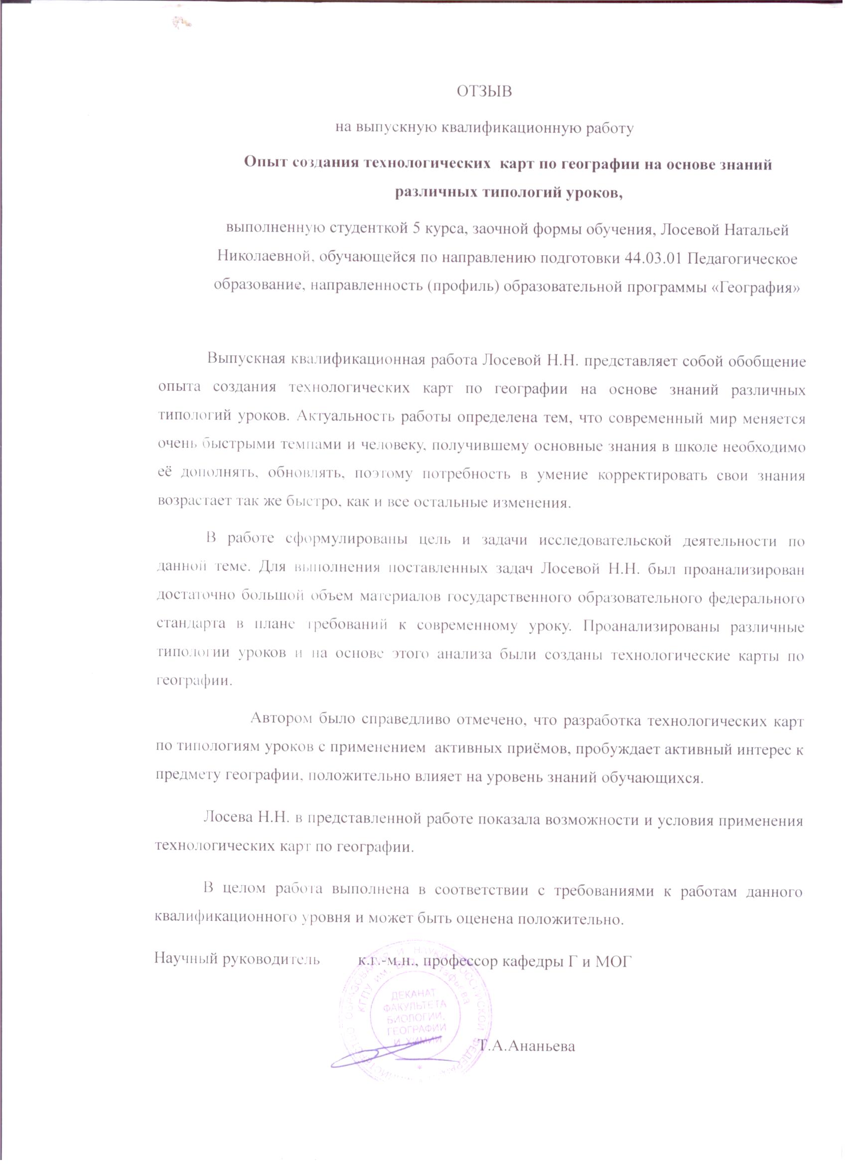 Опыт создания технологических карт по географии на основе знаний различных типологий уроков. ВКР, заочное, 2017