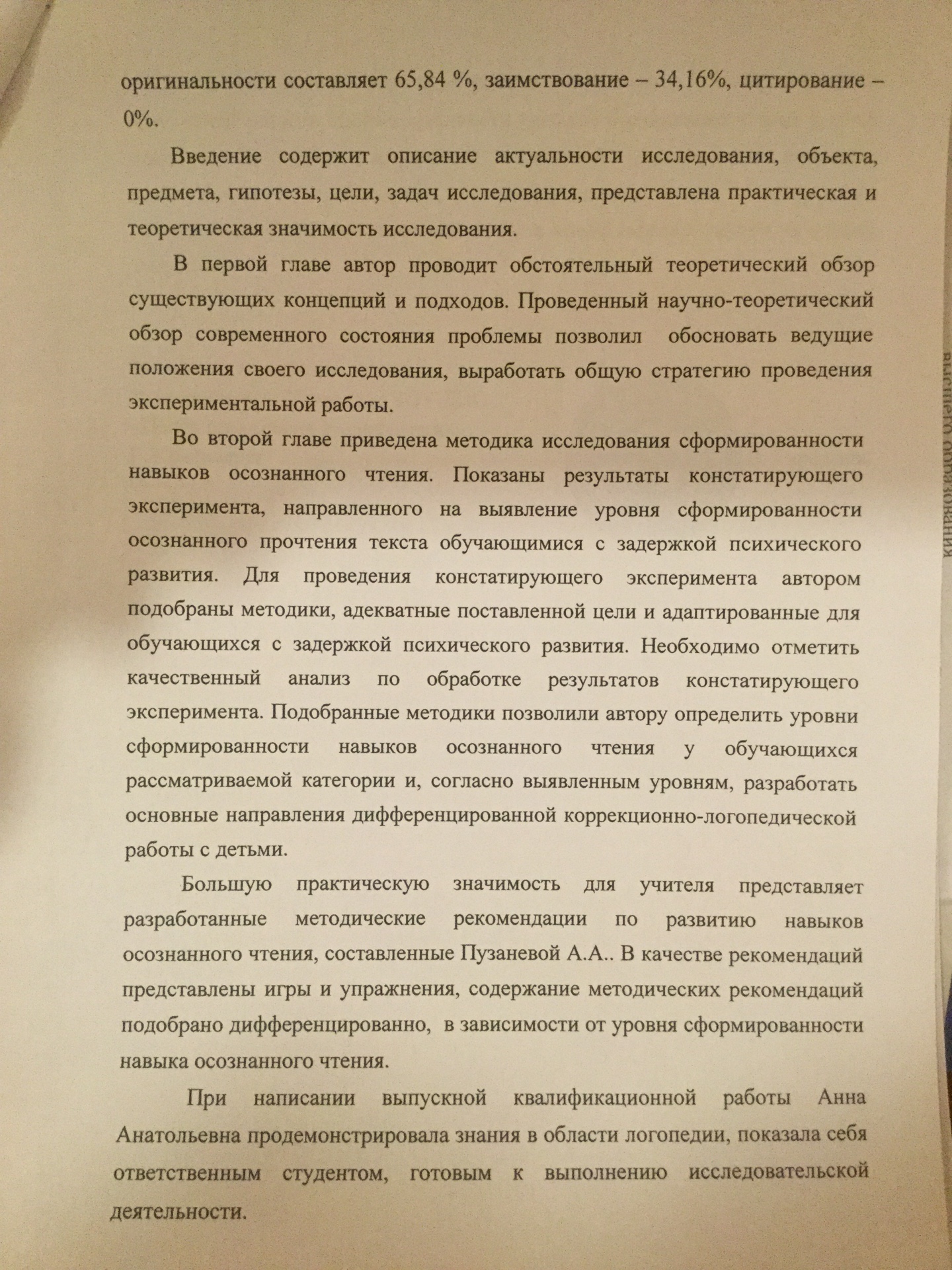 Особенности сформиированности навыка осознанного чтения у обучающихся младшего школьного возраста с задержкой психического раззвития