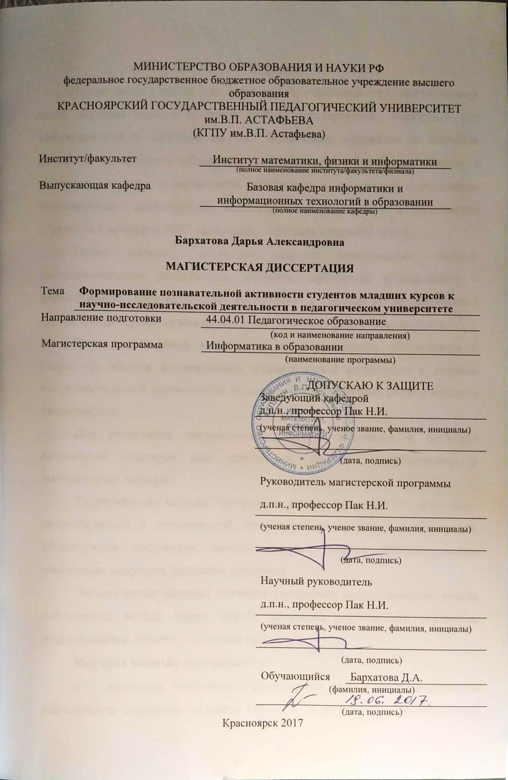 Формирование познавательной активности студентов младших курсов к научно-исследовательской деятельности в педагогическом университете