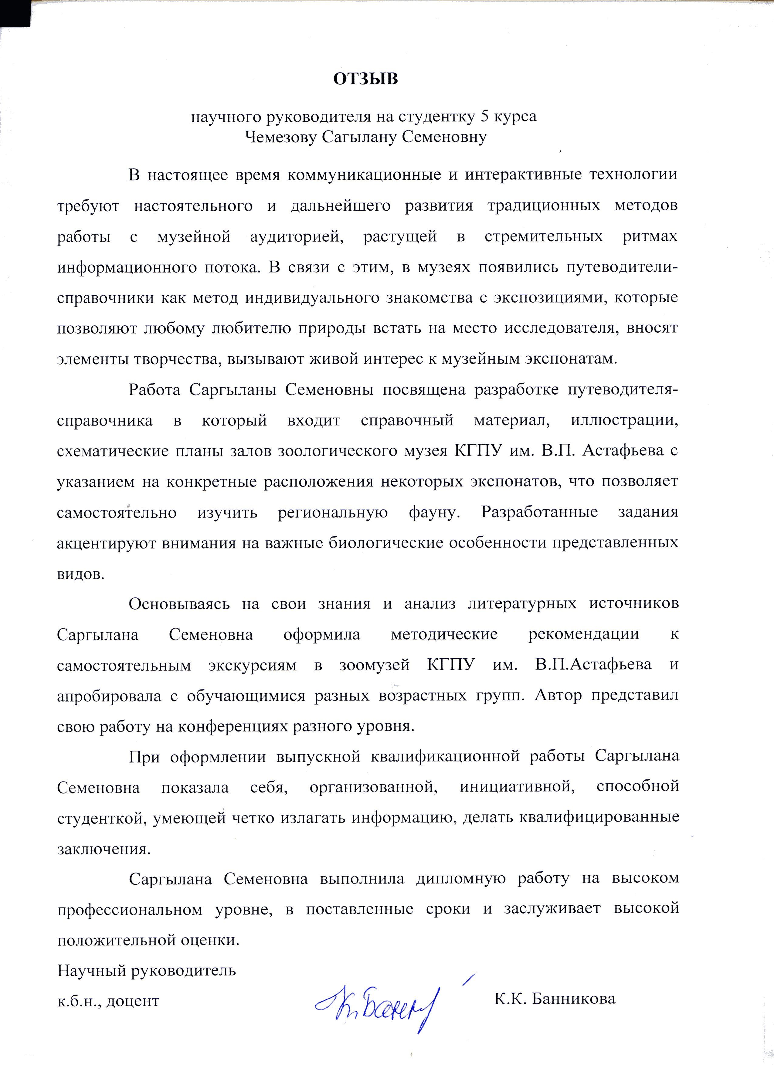 Чемезова С.С. ОРГАНИЗАЦИЯ И ПРОВЕДЕНИЕ ЭКСКУРСИОННОЙ РАБОТЫ СО ШКОЛЬНИКАМИ НА МАТЕРИАЛАХ ЗООЛОГИЧЕСКОГО МУЗЕЯ КГПУ им. В. П. АСТАФЬЕВА