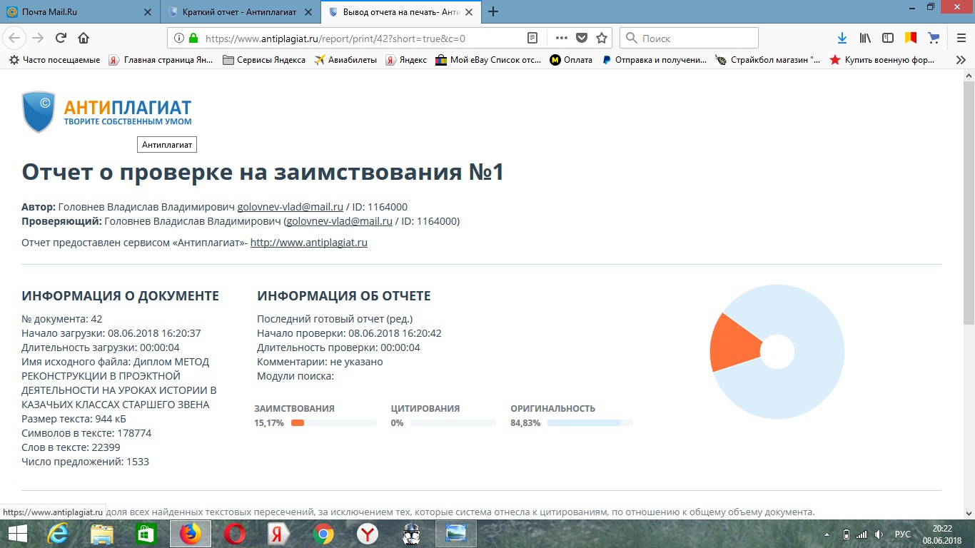 «Особенности применения метода реконструкции на уроках истории по теме «Великая война» в казачьих классах старшего звена»