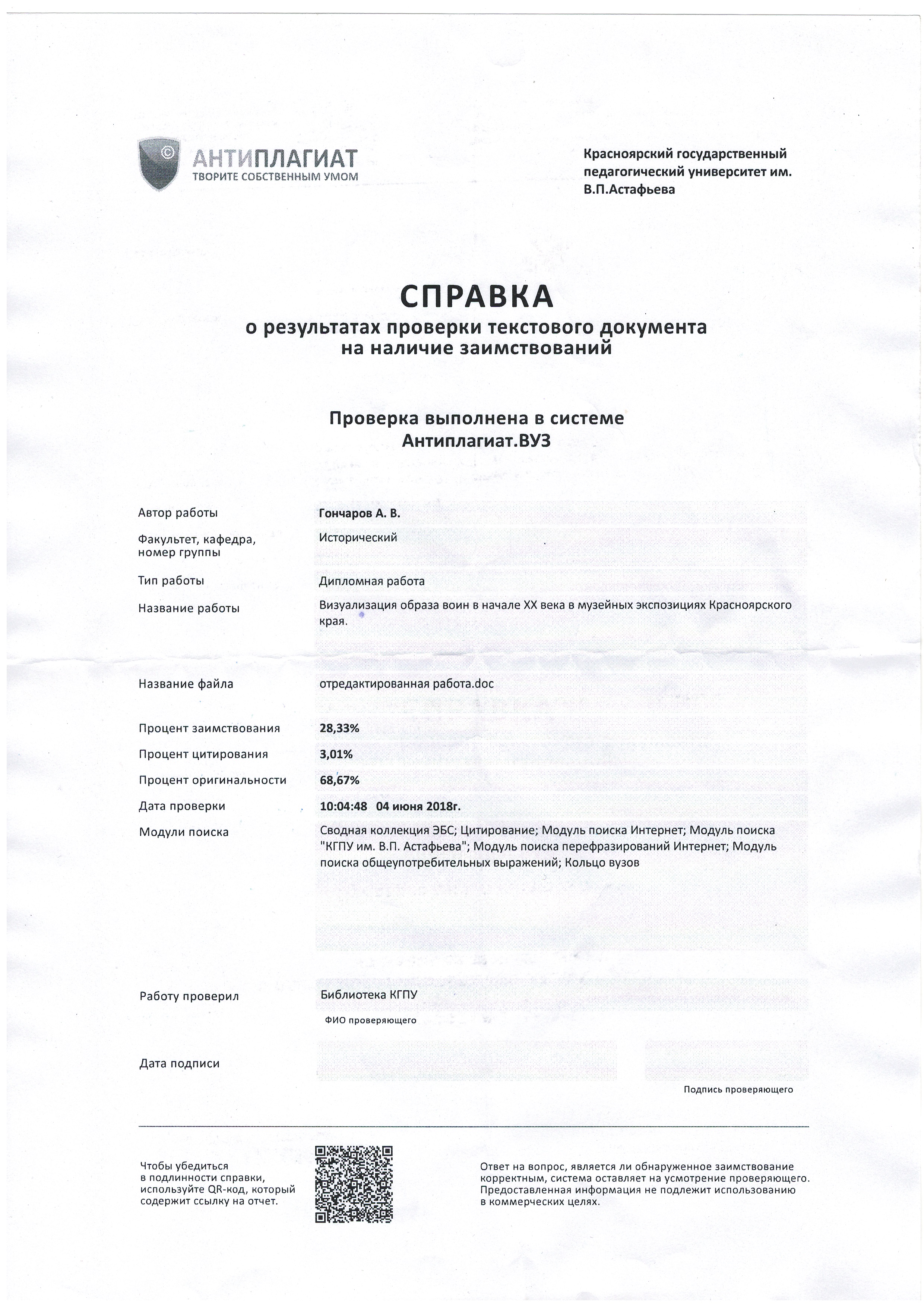 «Визуализация образа воин в начале ХХ века в музейных экспозициях Красноярского края»