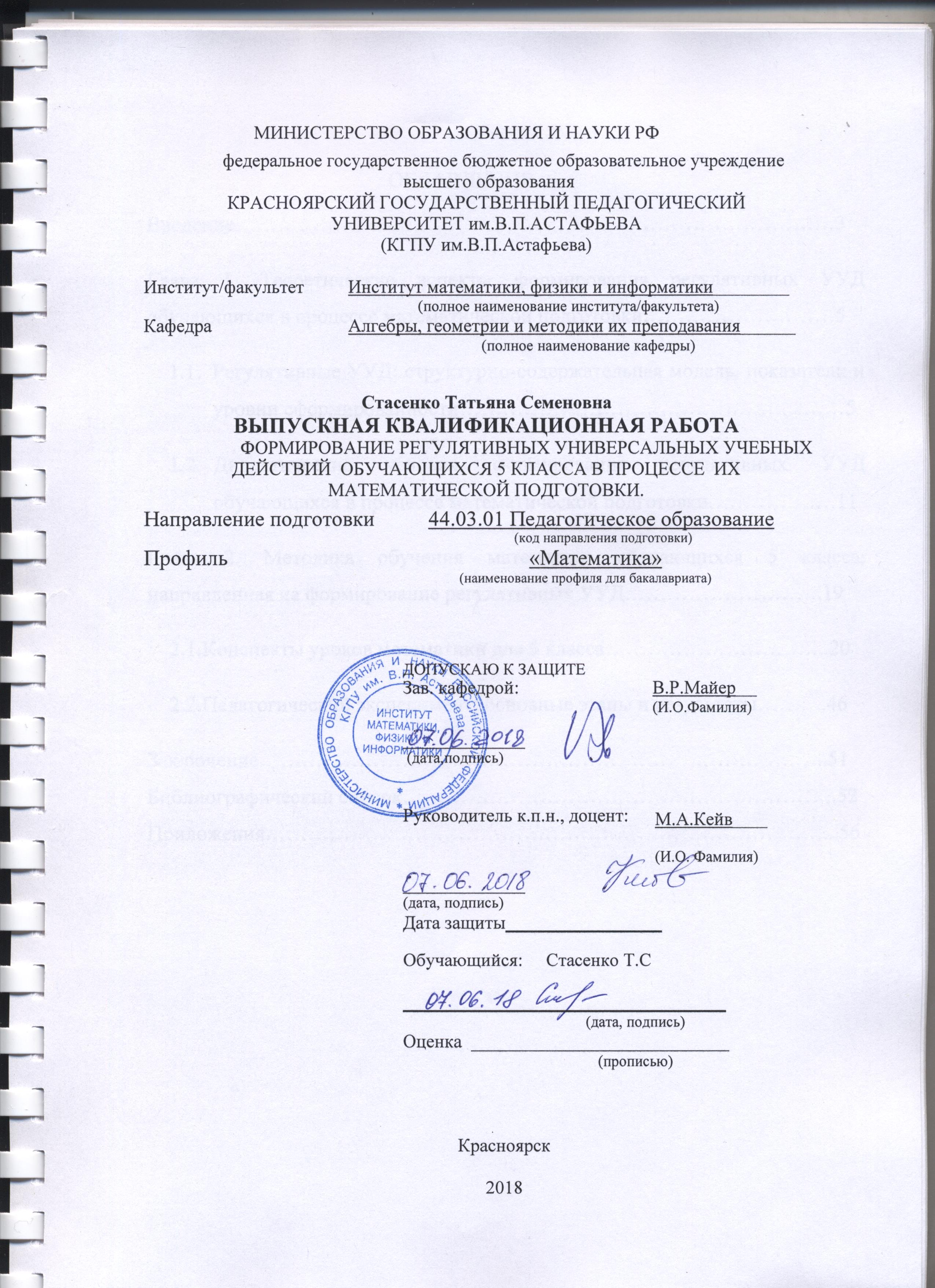 ФОРМИРОВАНИЕ РЕГУЛЯТИВНЫХ УНИВЕРСАЛЬНЫХ УЧЕБНЫХ ДЕЙСТВИЙ ОБУЧАЮЩИХСЯ 5 КЛАССА В ПРОЦЕССЕ ИХ МАТЕМАТИЧЕСКОЙ ПОДГОТОВКИ