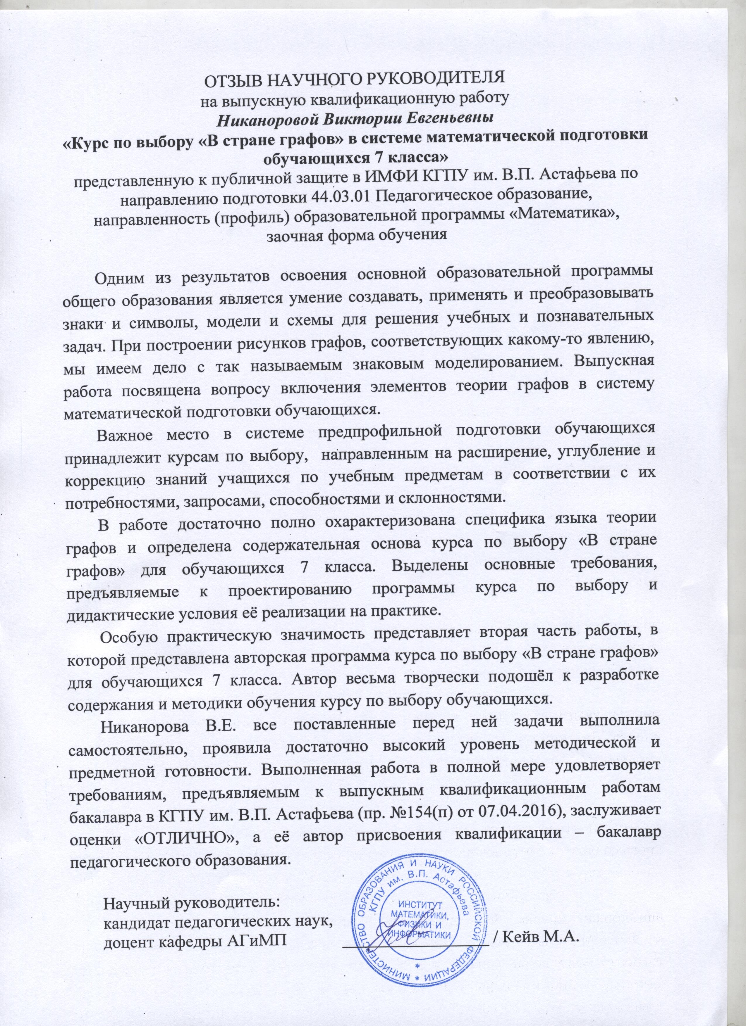 Курс по выбору «В стране графов» в системе математической подготовки обучающихся 7 класса