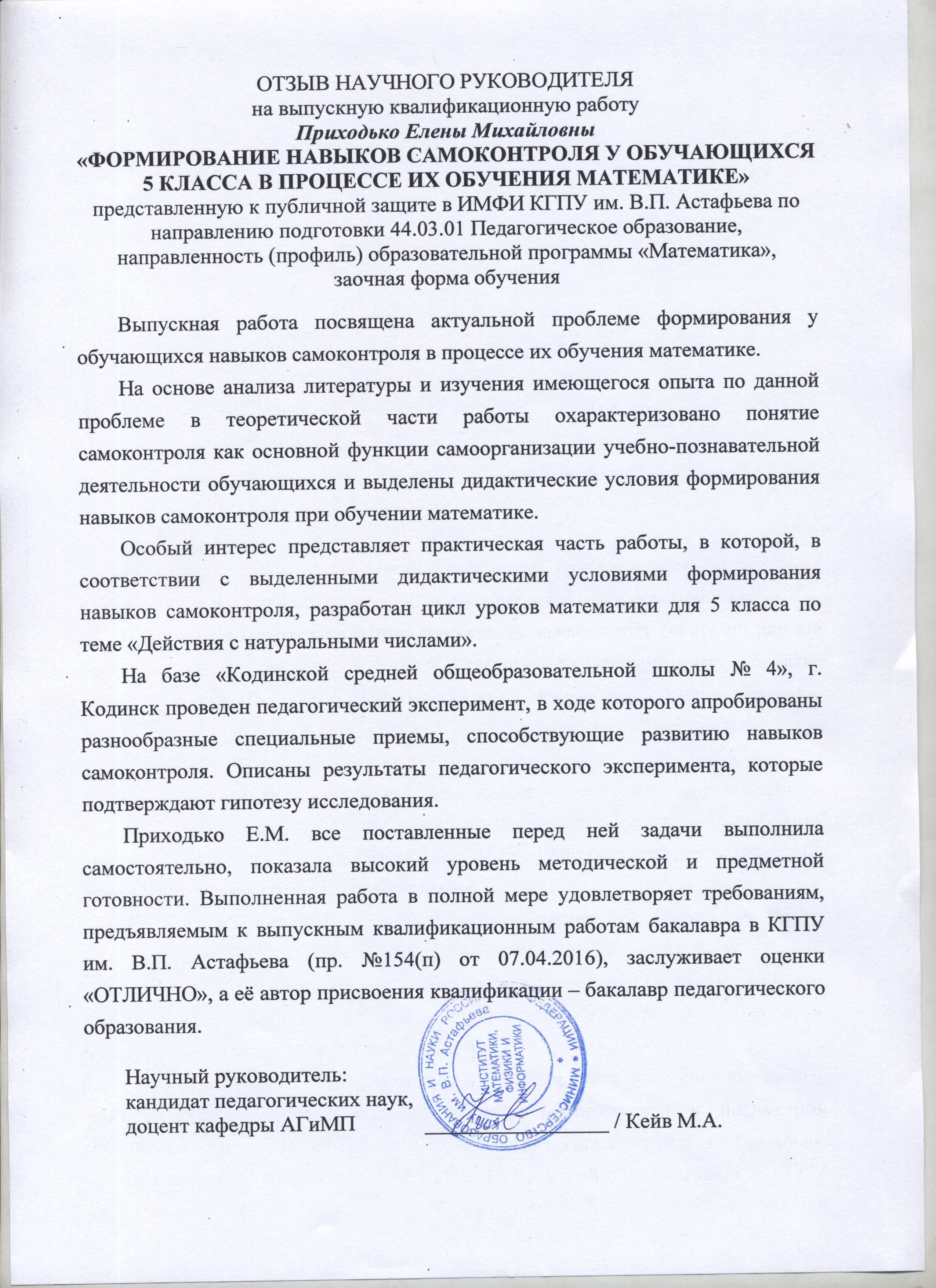 ФОРМИРОВАНИЕ НАВЫКОВ САМОКОНТРОЛЯ У ОБУЧАЮЩИХСЯ 5 КЛАССА В ПРОЦЕССЕ ИХ ОБУЧЕНИЯ МАТЕМАТИКЕ
