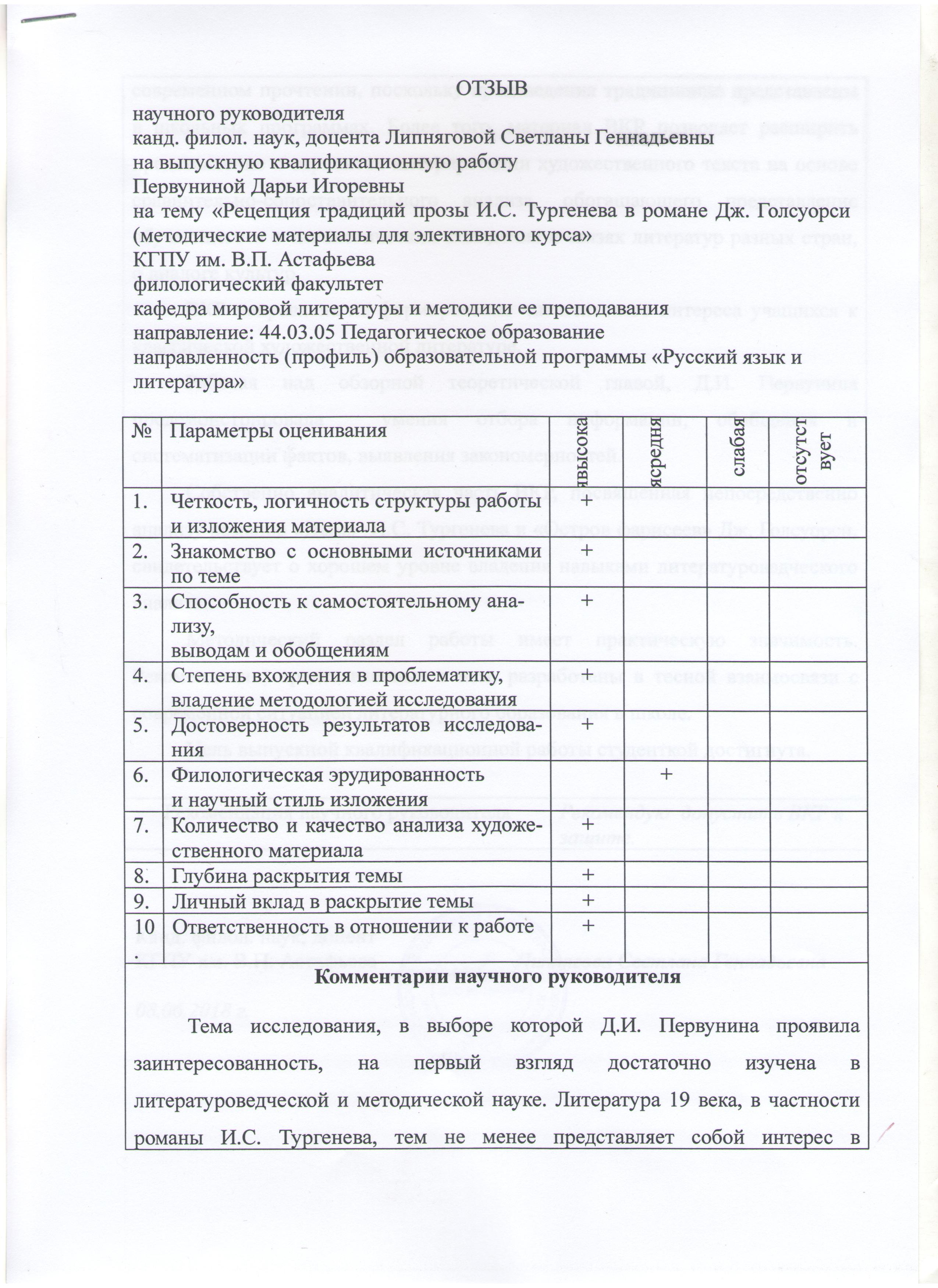Рецепция традиций прозы И.С. Тургенева в романе Дж. Голсуорси(методические материалы для элективного курса)