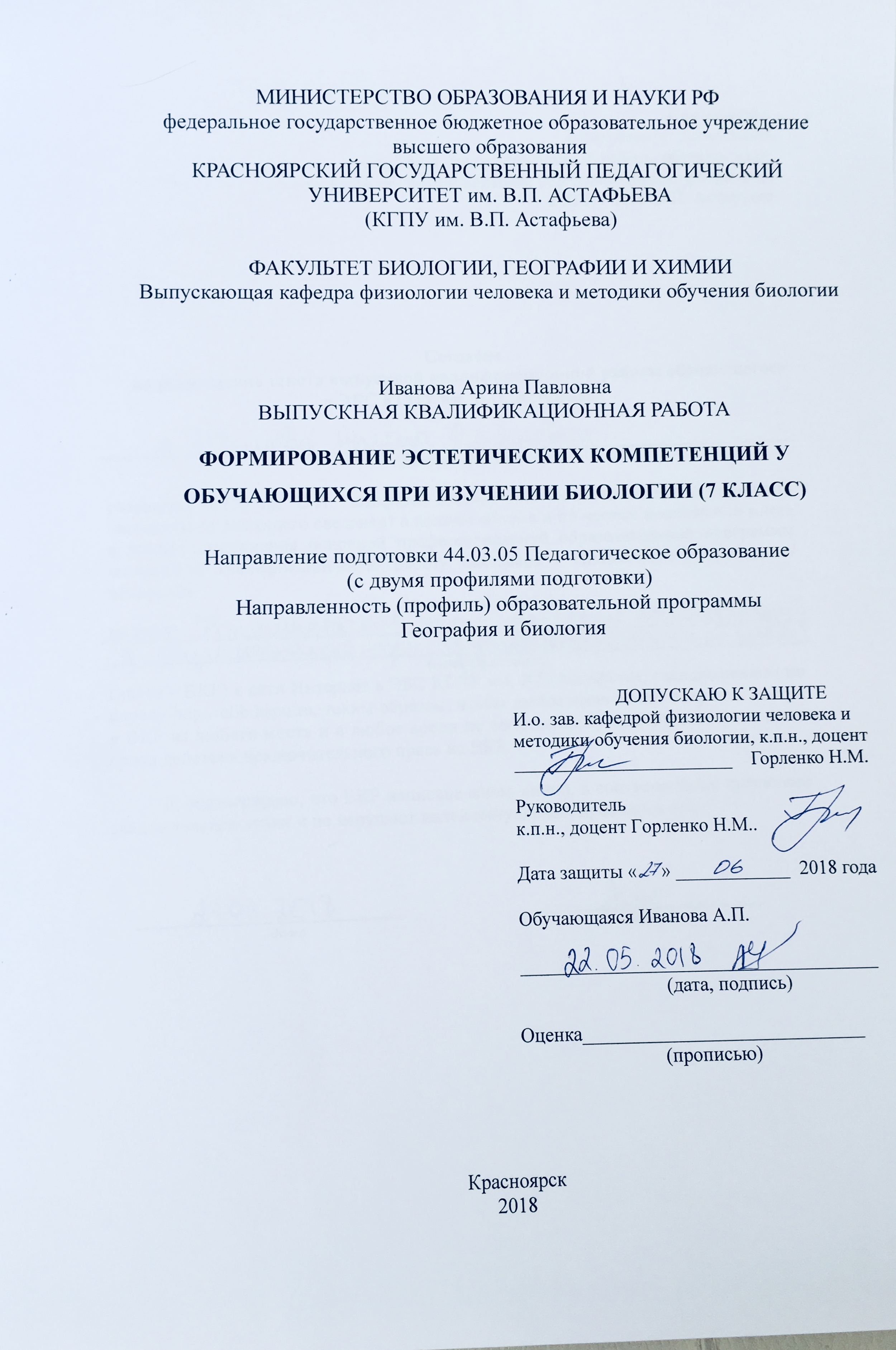 ФОРМИРОВАНИЕ ЭСТЕТИЧЕСКИХ КОМПЕТЕНЦИЙ ПРИ ОБУЧЕНИИ БИОЛОГИИ (7 класс)