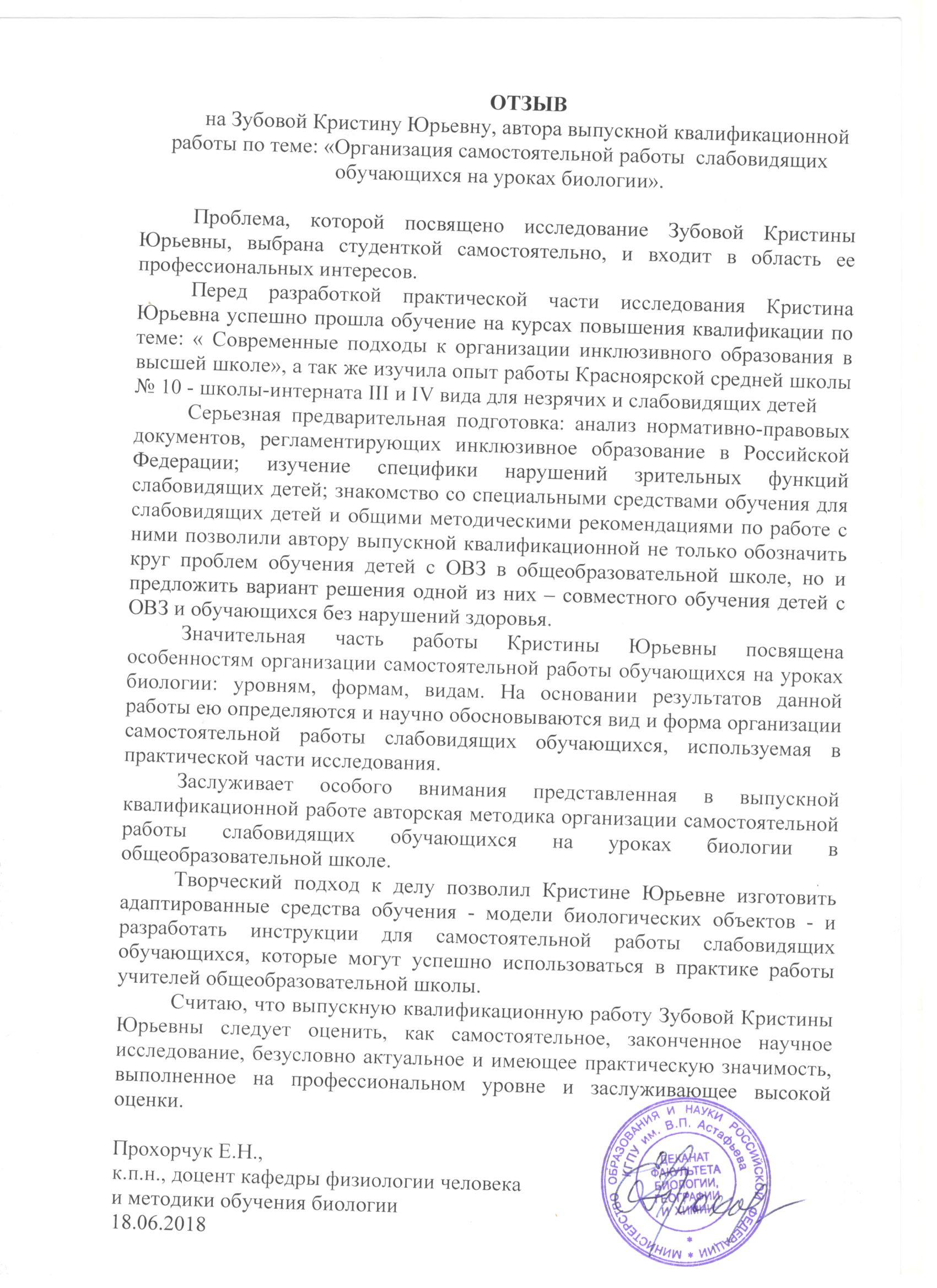 Организация самостоятельной работы слабовидящих обучающихся на уроках биологии