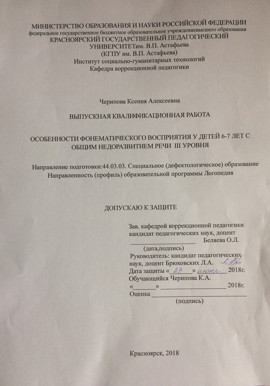 Особенности фонематического восприятия у детей 6-7 лет с общим недоразвитием речи III уровня
