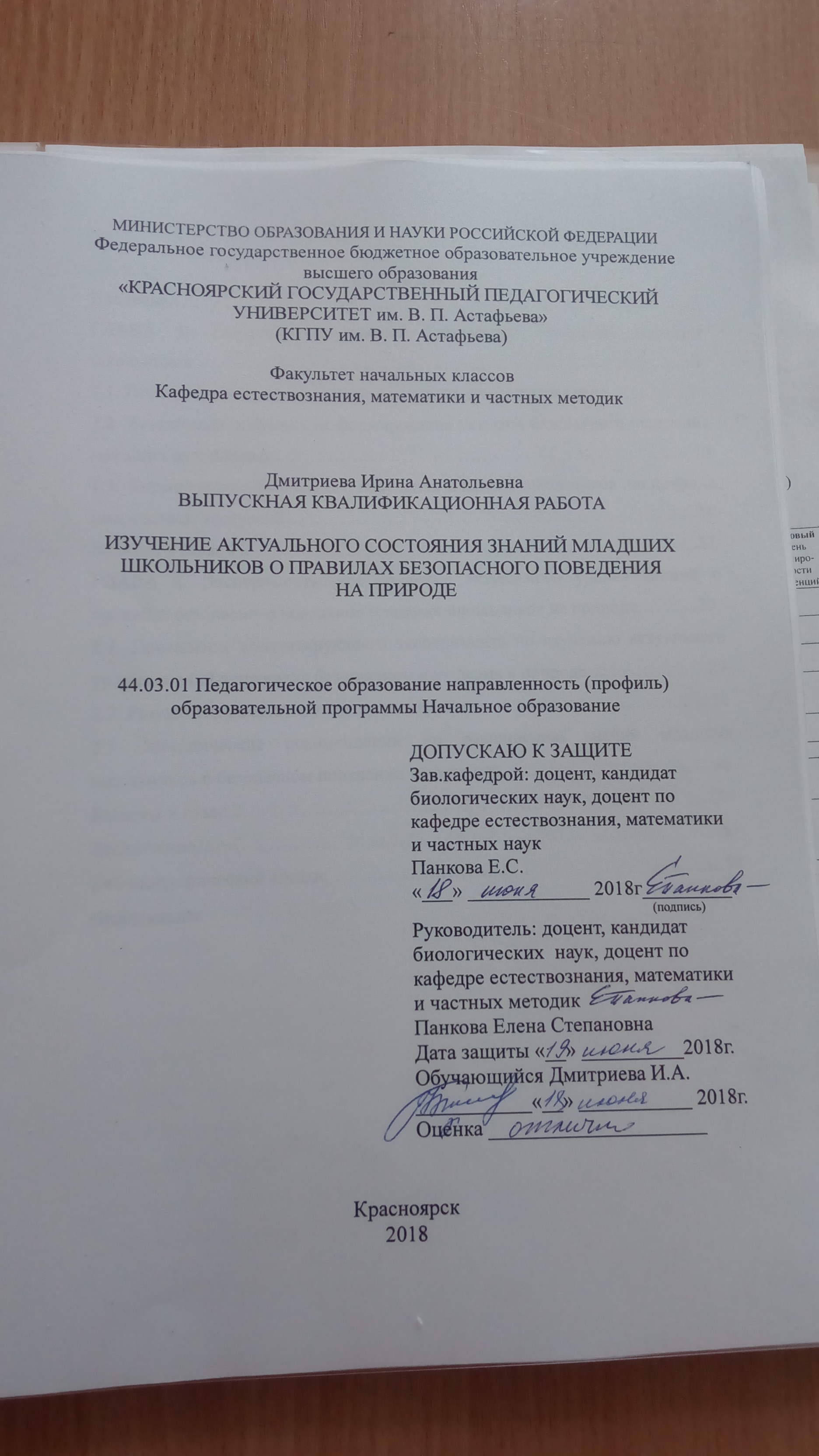 Изyчение актуального состояния знаний младших школьников о правилах безопасного поведения на природе