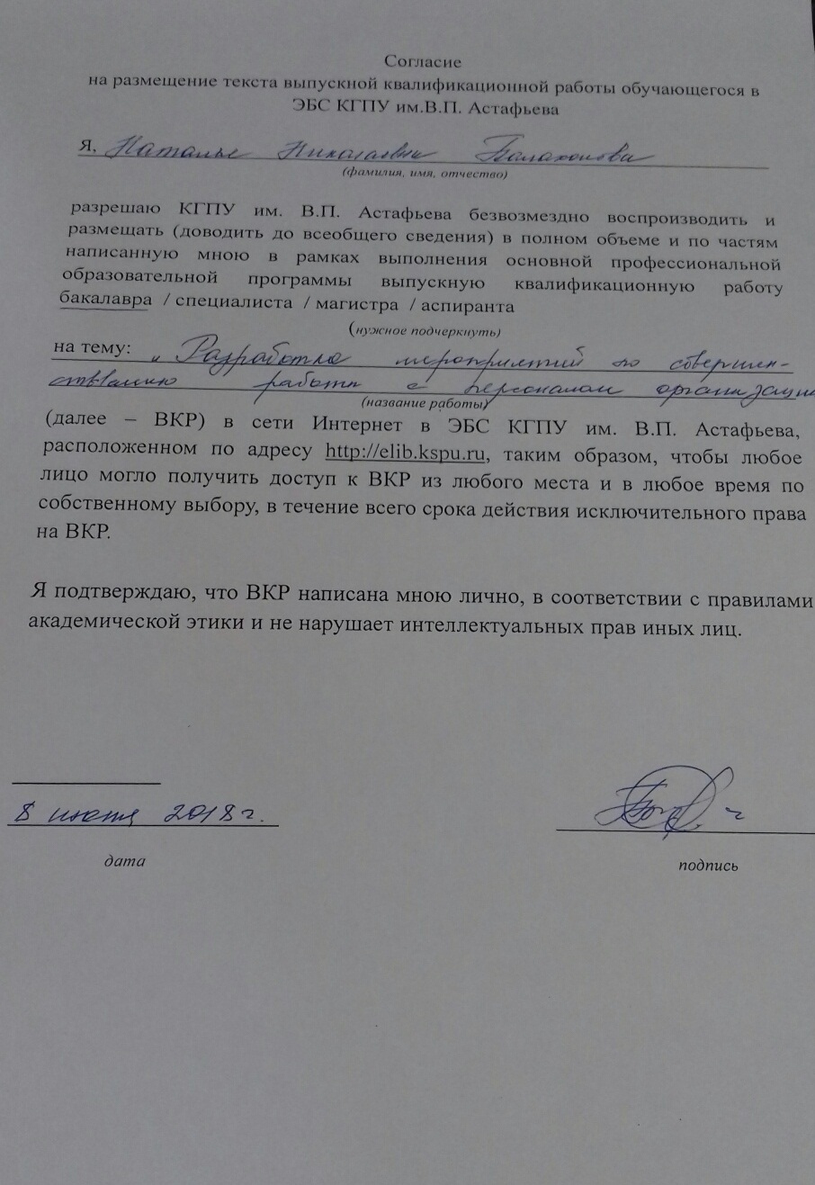 Разработка мероприятий по совершенствованию работы с персоналом организации