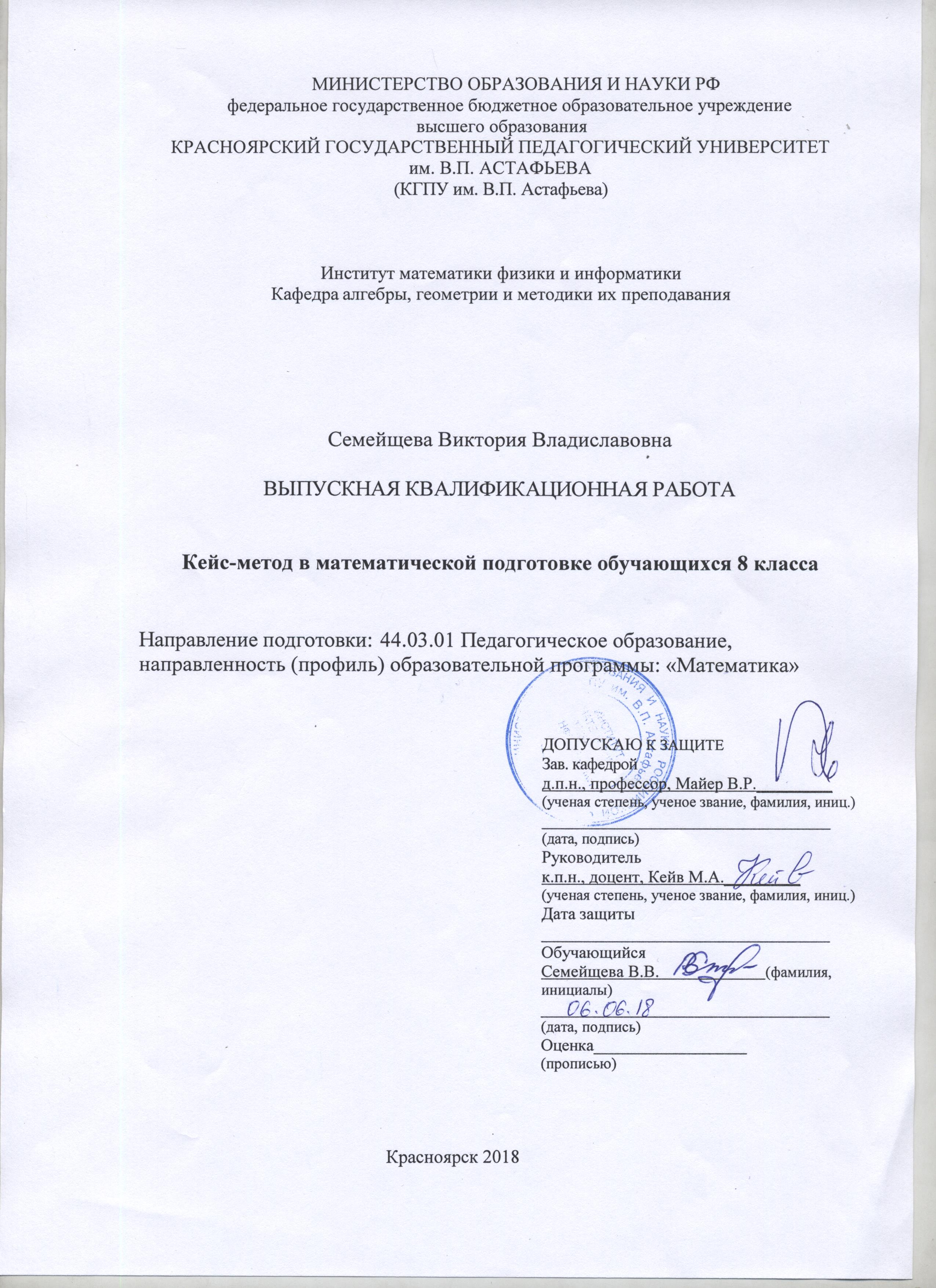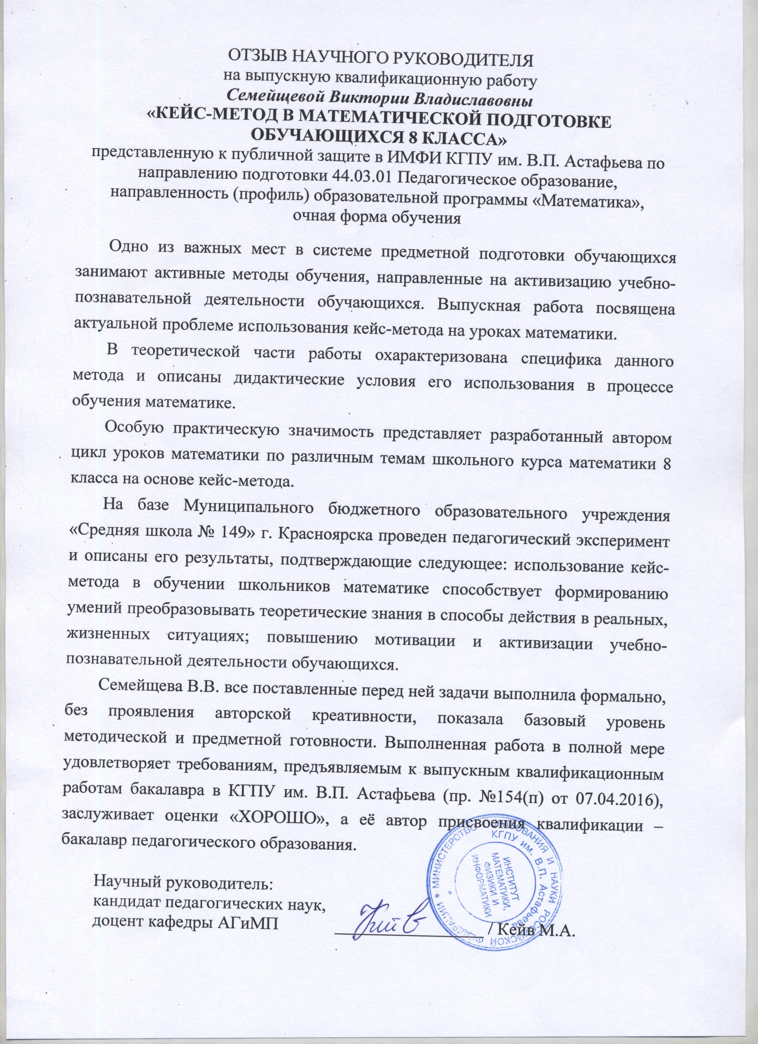 Кейс-метод в математической подготовке обучающихся 8 класса