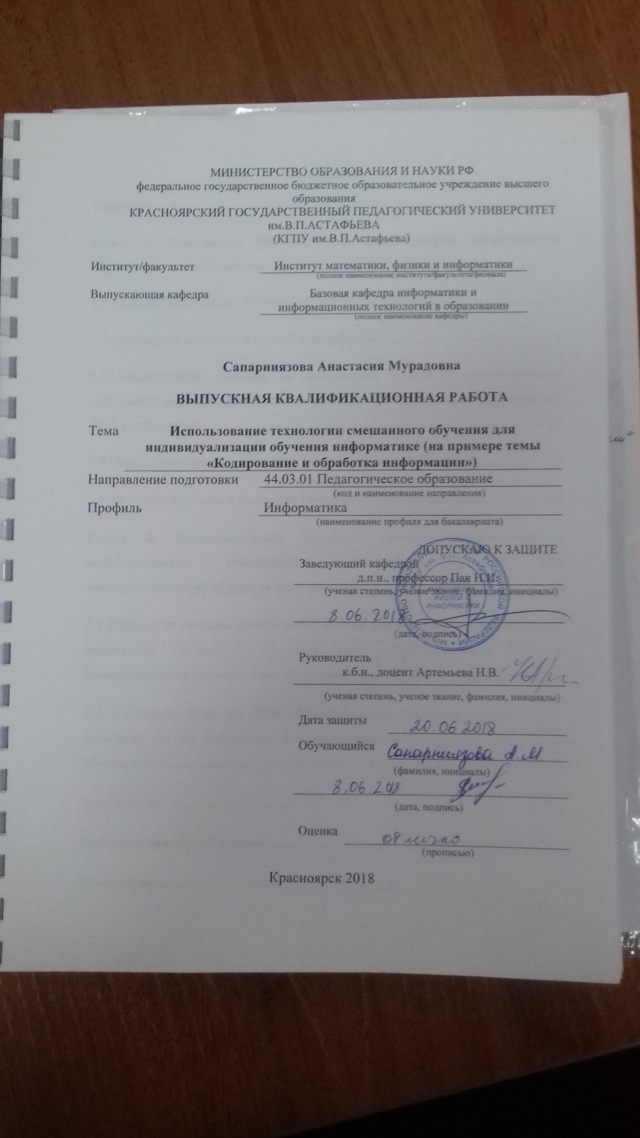 Использование технологии смешанного обучения для индивидуализации обучения информатике (на примере темы «Кодирование и обработка информации»)