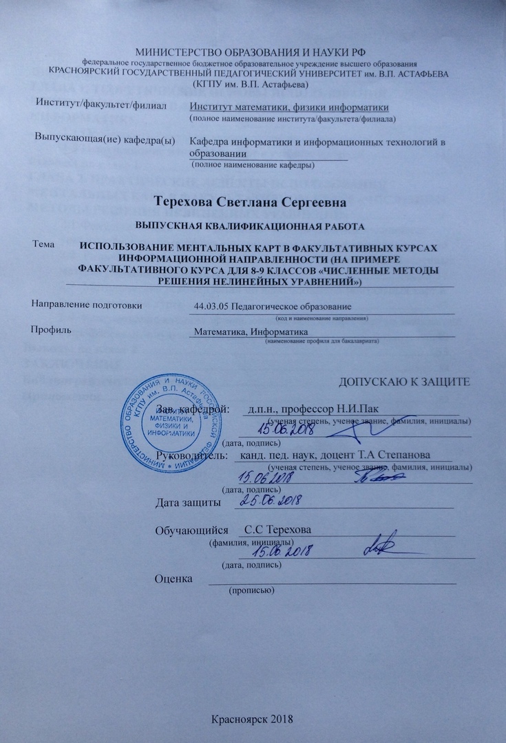 ИСПОЛЬЗОВАНИЕ МЕНТАЛЬНЫХ КАРТ В ФАКУЛЬТАТИВНЫХ КУРСАХ ИНФОРМАЦИОННОЙ НАПРАВЛЕННОСТИ (НА ПРИМЕРЕ ФАКУЛЬТАТИВНОГО КУРСА ДЛЯ 8-9 КЛАССОВ «ЧИСЛЕННЫЕ МЕТОДЫ РЕШЕНИЯ НЕЛИНЕЙНЫХ УРАВНЕНИЙ»)