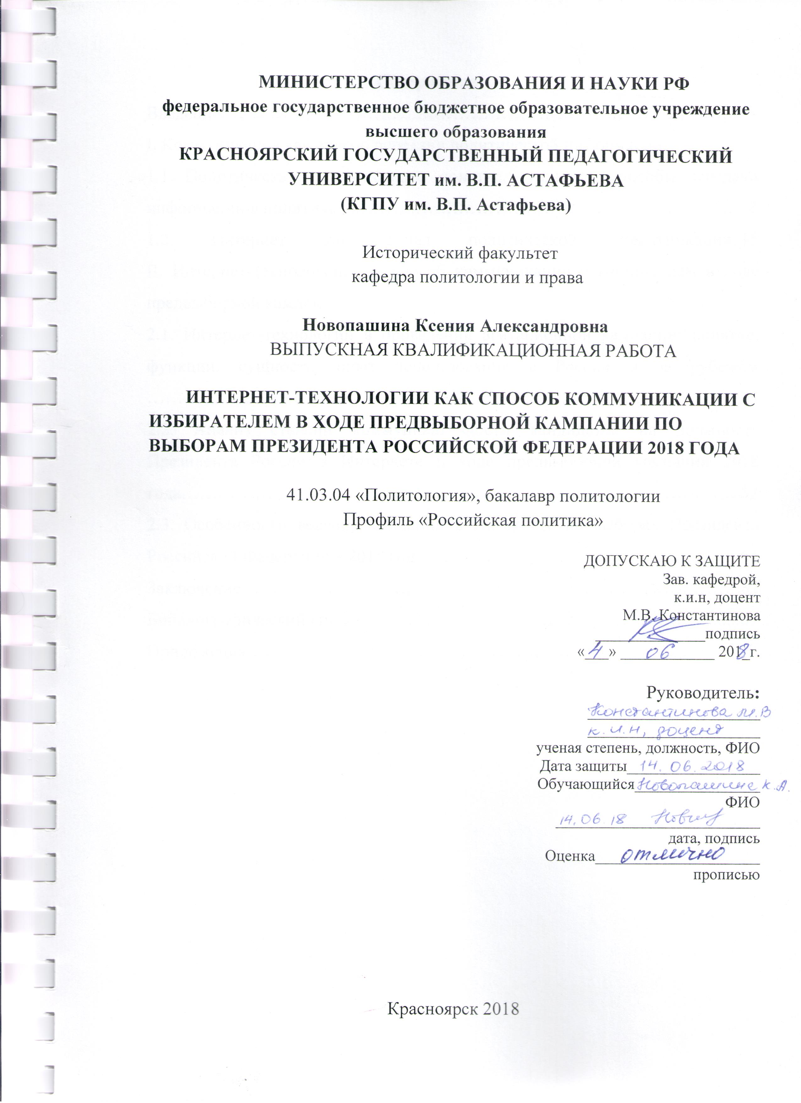 ИНТЕРНЕТ-ТЕХНОЛОГИИ КАК СПОСОБ КОММУНИКАЦИИ С ИЗБИРАТЕЛЕМ В ХОДЕ ПРЕДВЫБОРНОЙ КАМПАНИИ ПО ВЫБОРАМ ПРЕЗИДЕНТА РОССИЙСКОЙ ФЕДЕРАЦИИ 2018 ГОДА