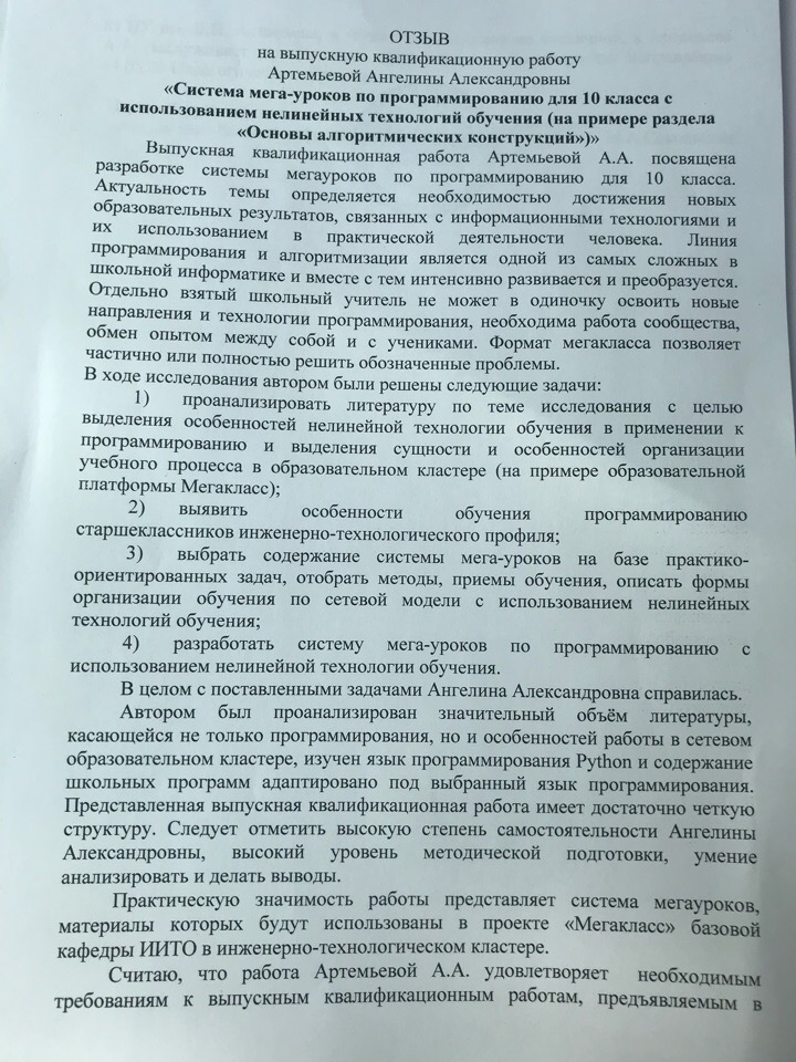 Система мега-уроков по программированию для 10 класса с использованием нелинейных технологий обучения (на примере раздела «Основы алгоритмических конструкций»)