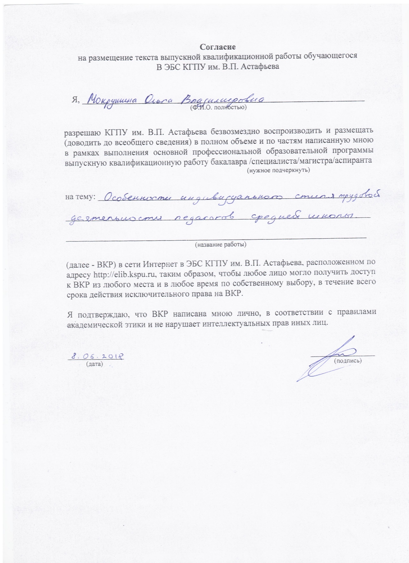 Мокрушина О.В. Особенности индивидуального стиля трудовой деятельности педагогов средней школы