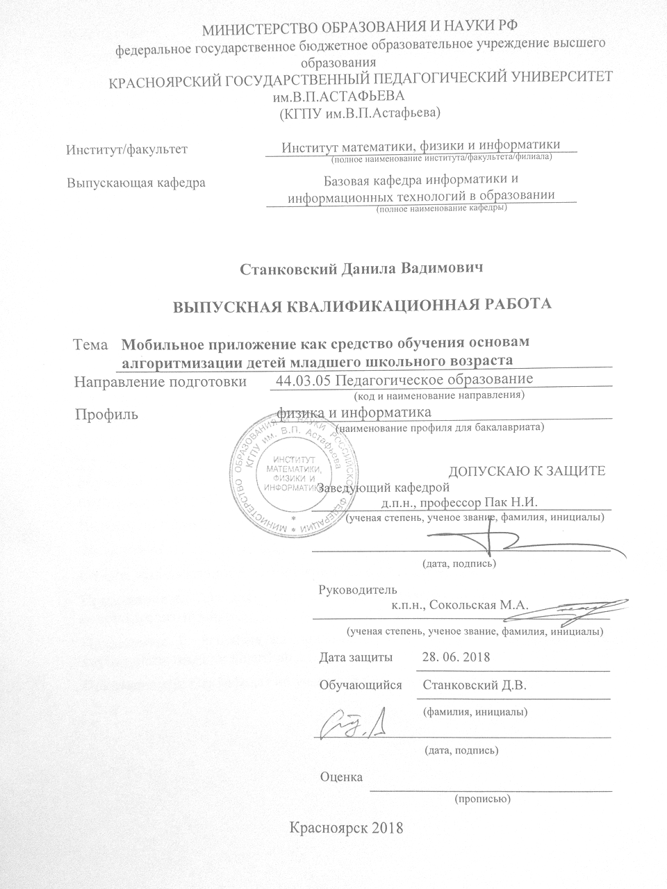 Мобильное приложение как средство обучения основам алгоритмизации детей младшего школьного возраста