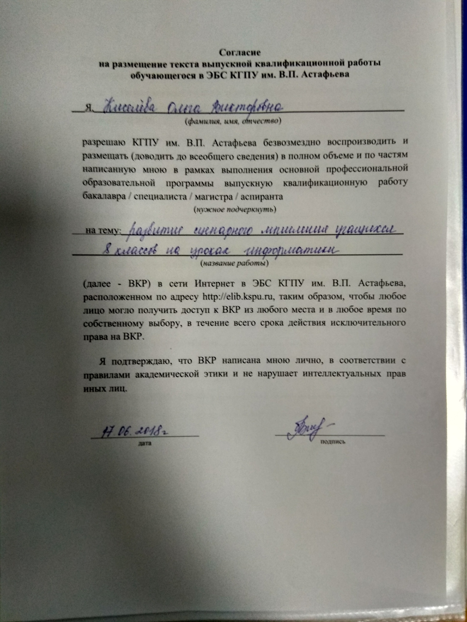 Развитие сценарного мышления учащихся 8 классов на уроках информатики