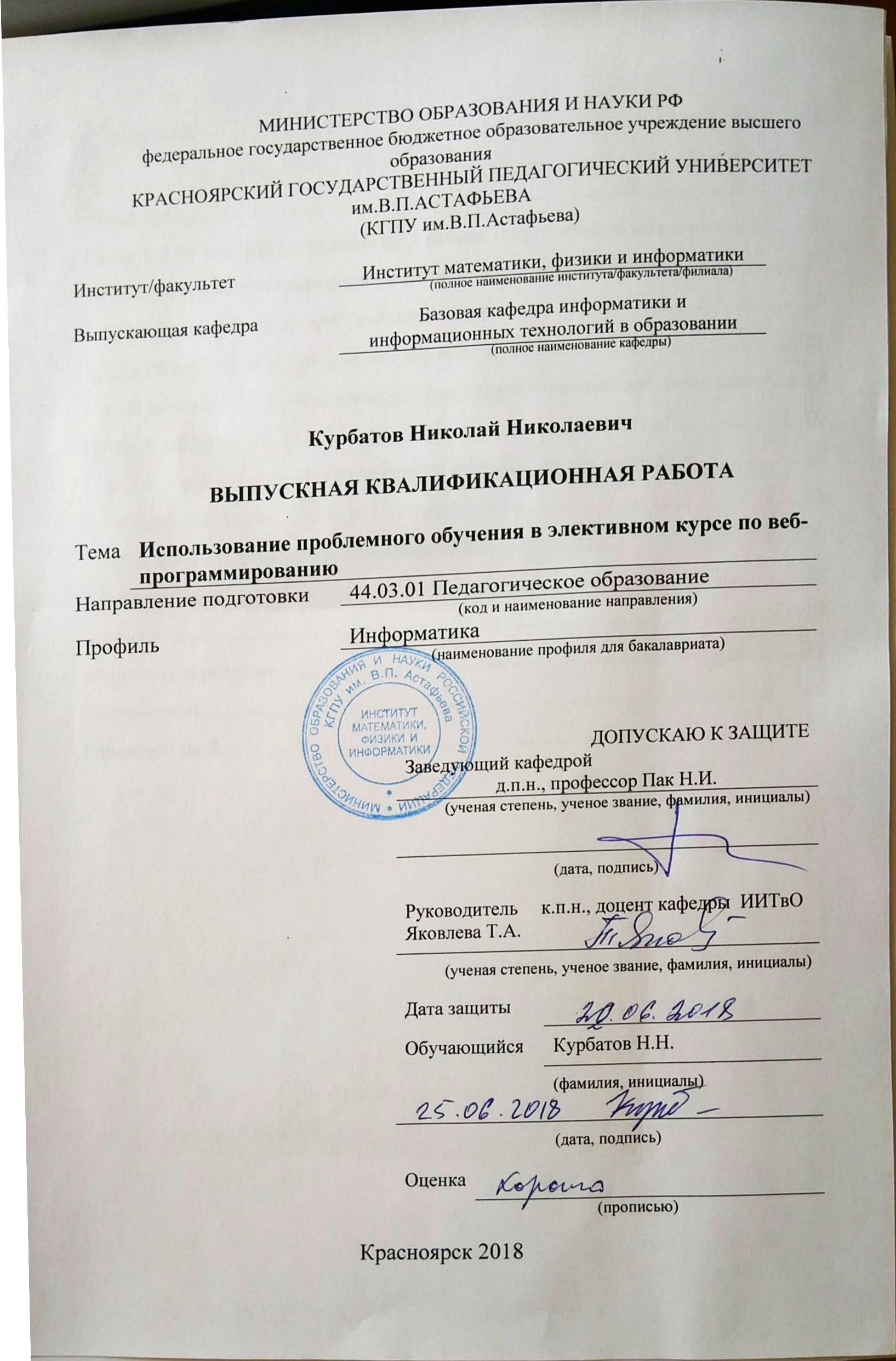 Использование проблемного обучения в элективном курсе по веб-программированию