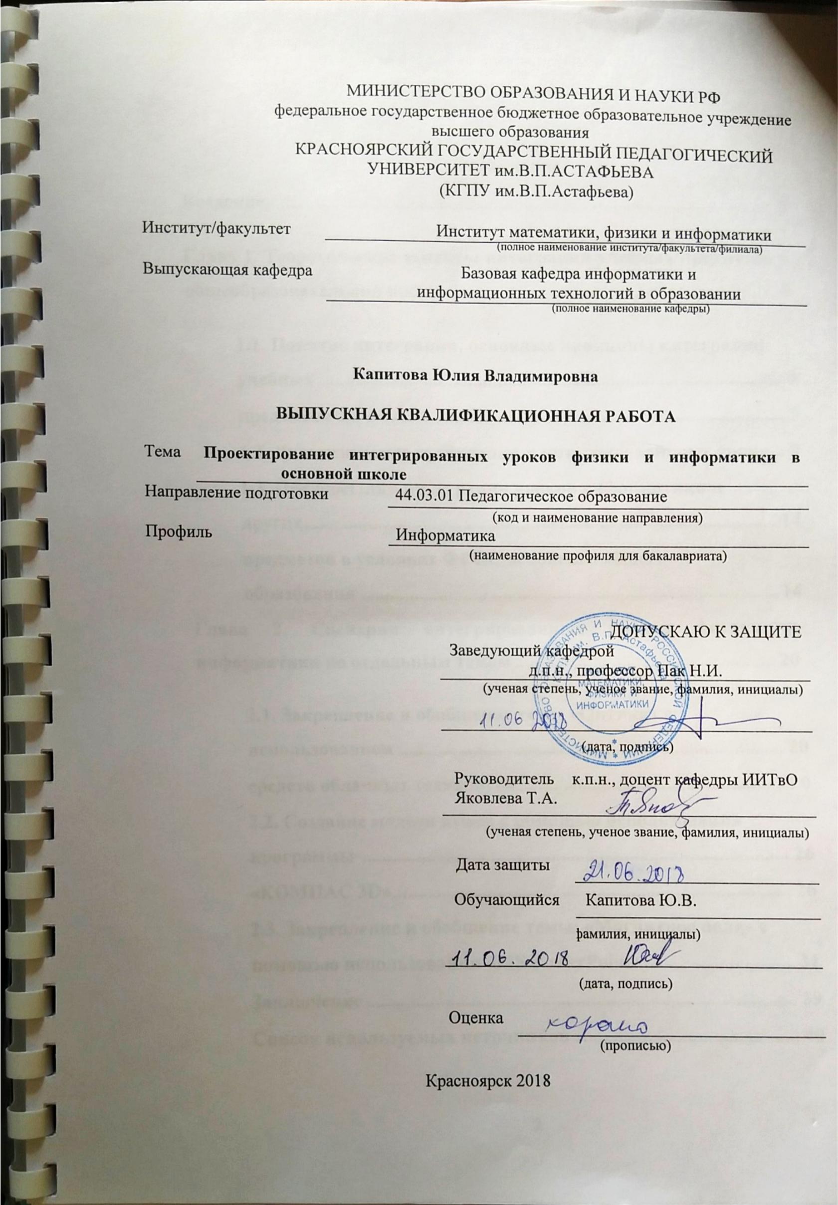 Проектирование интегрированных уроков физики и информатики в основной школе