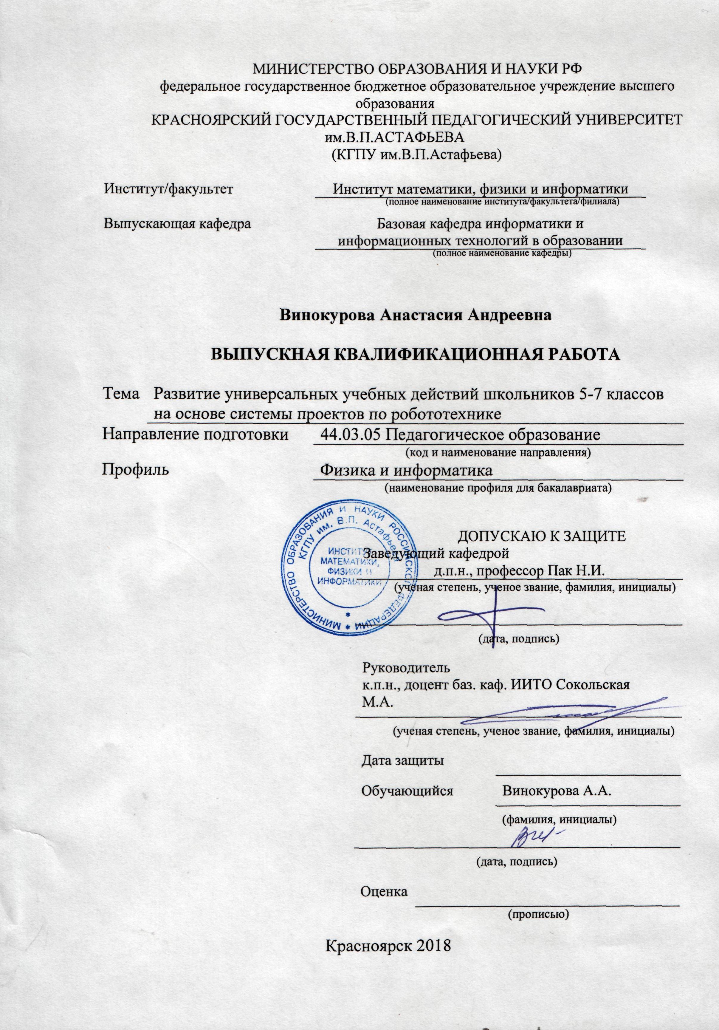 Развитие универсальных учебных действий школьников 5-7 классов на основе системы проектов по робототехнике