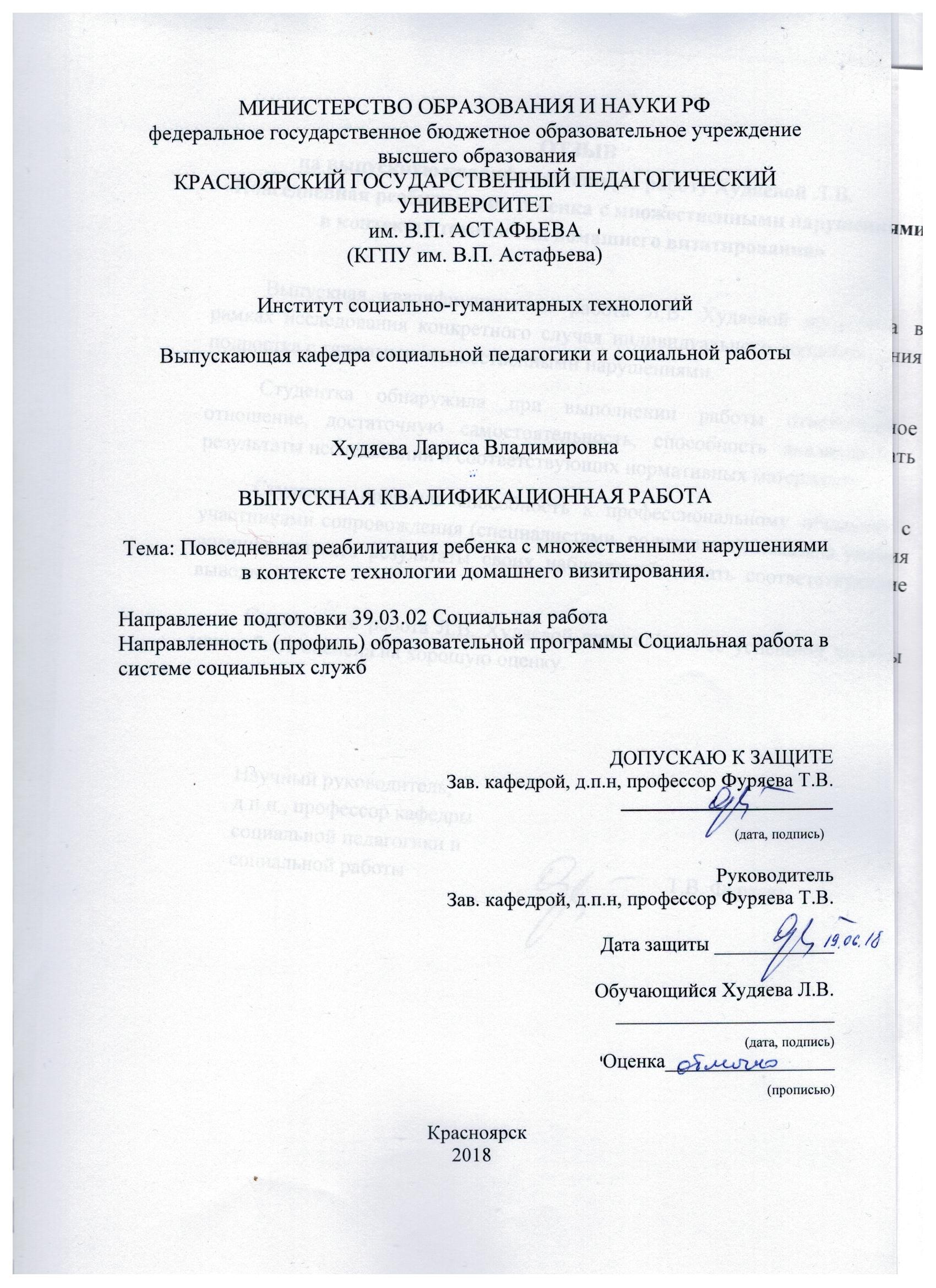 Повседневная реабилитация ребенка с множественными нарушениями в контексте технологии домашнего визитирования