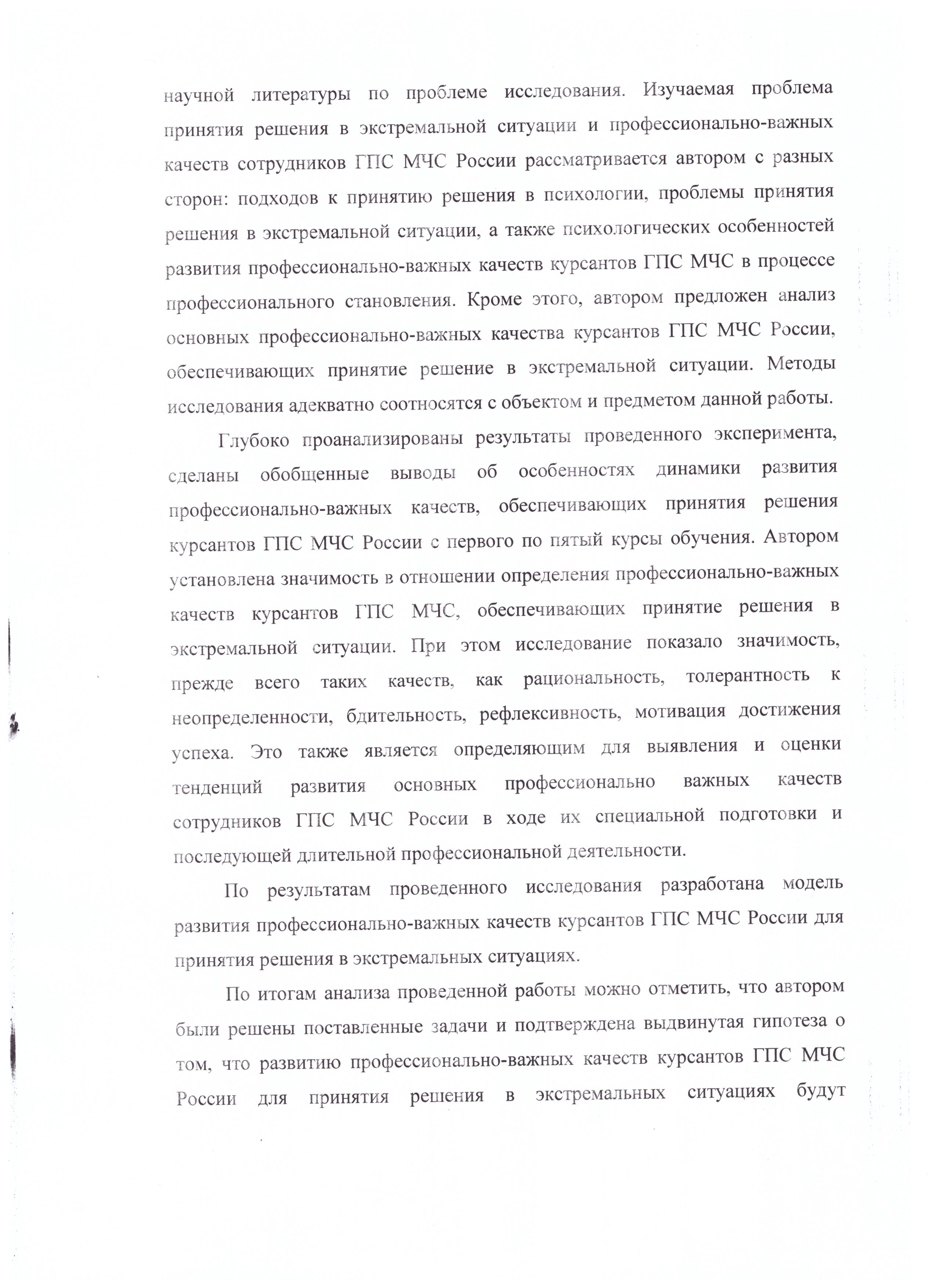 Развитие профессионально-важных качеств курсантов ГПС МЧС России для принятия решения в экстремальных ситуациях