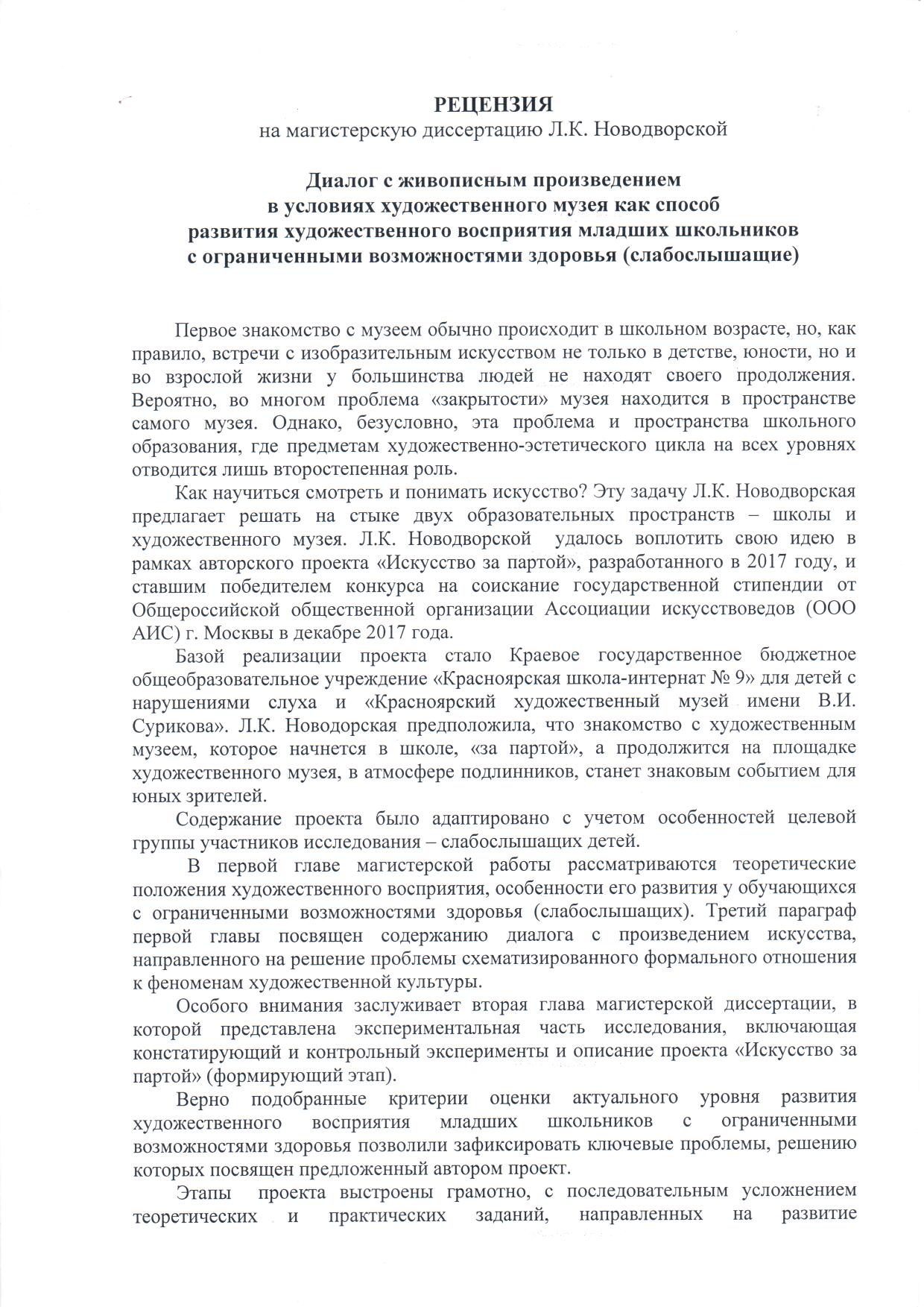Диалог с живописным произведением в условиях художественного музея как способ развития художественного восприятия младших школьников с ограниченными возможностями здоровья (слабослышащие)