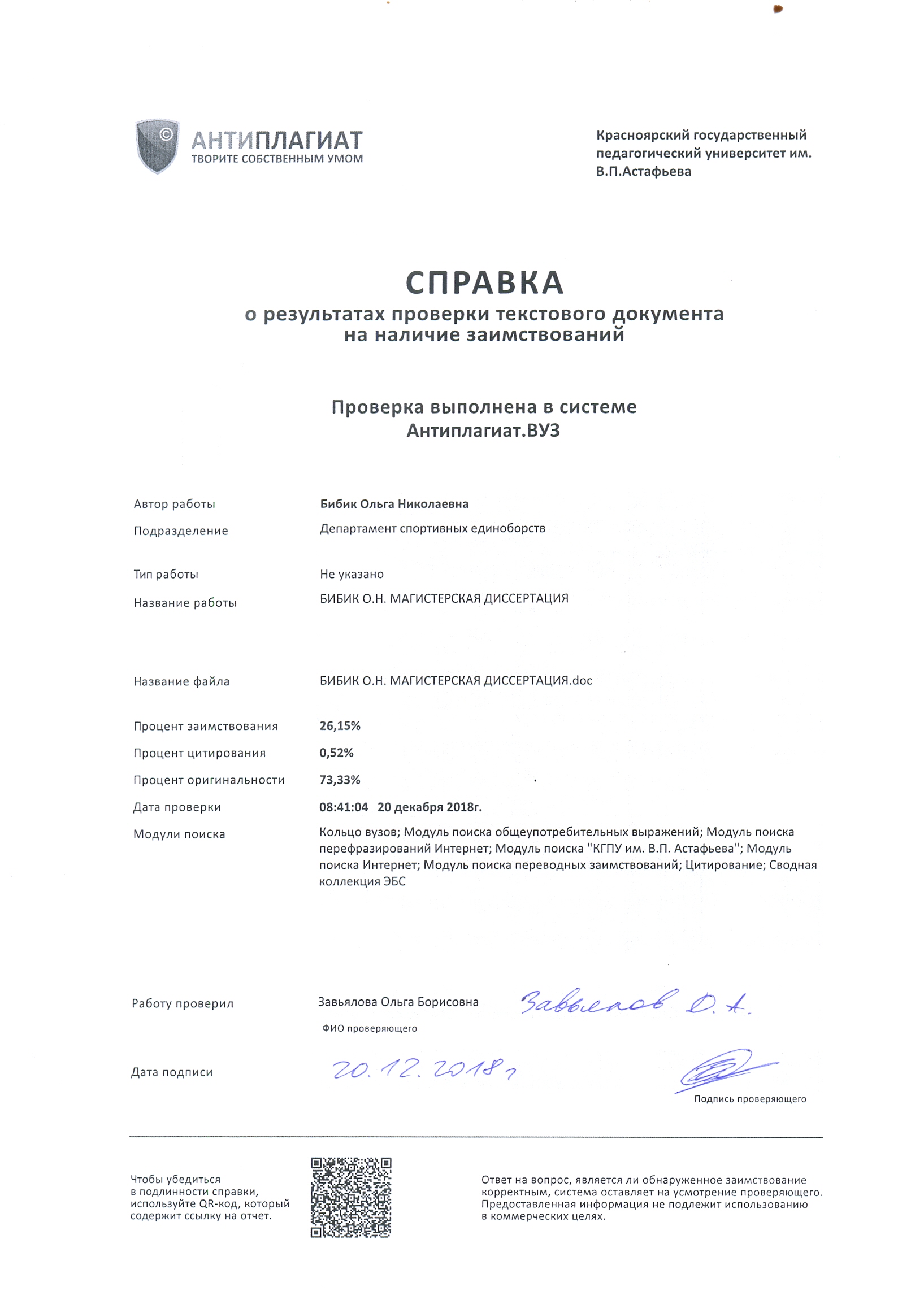Бибик Ольга Николаевна «Повышение спортивного результата скалолазов в дисциплине «боулдеринг» посредством оптимизации процесса специальной физической подготовки»