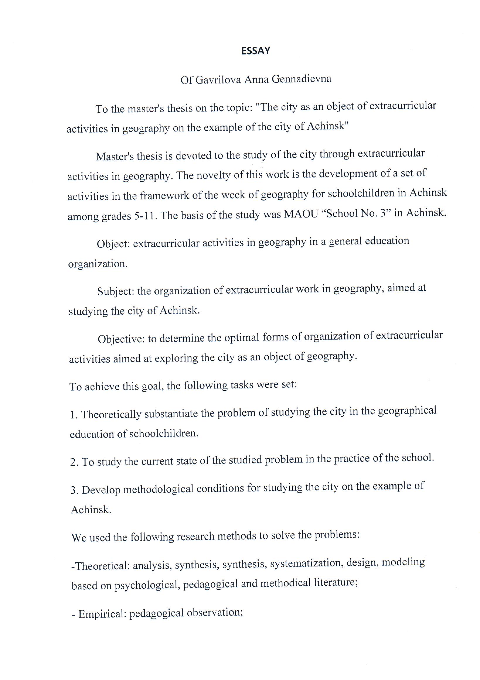 Город как объект внеурочной деятельности по географии на примере города Ачинска