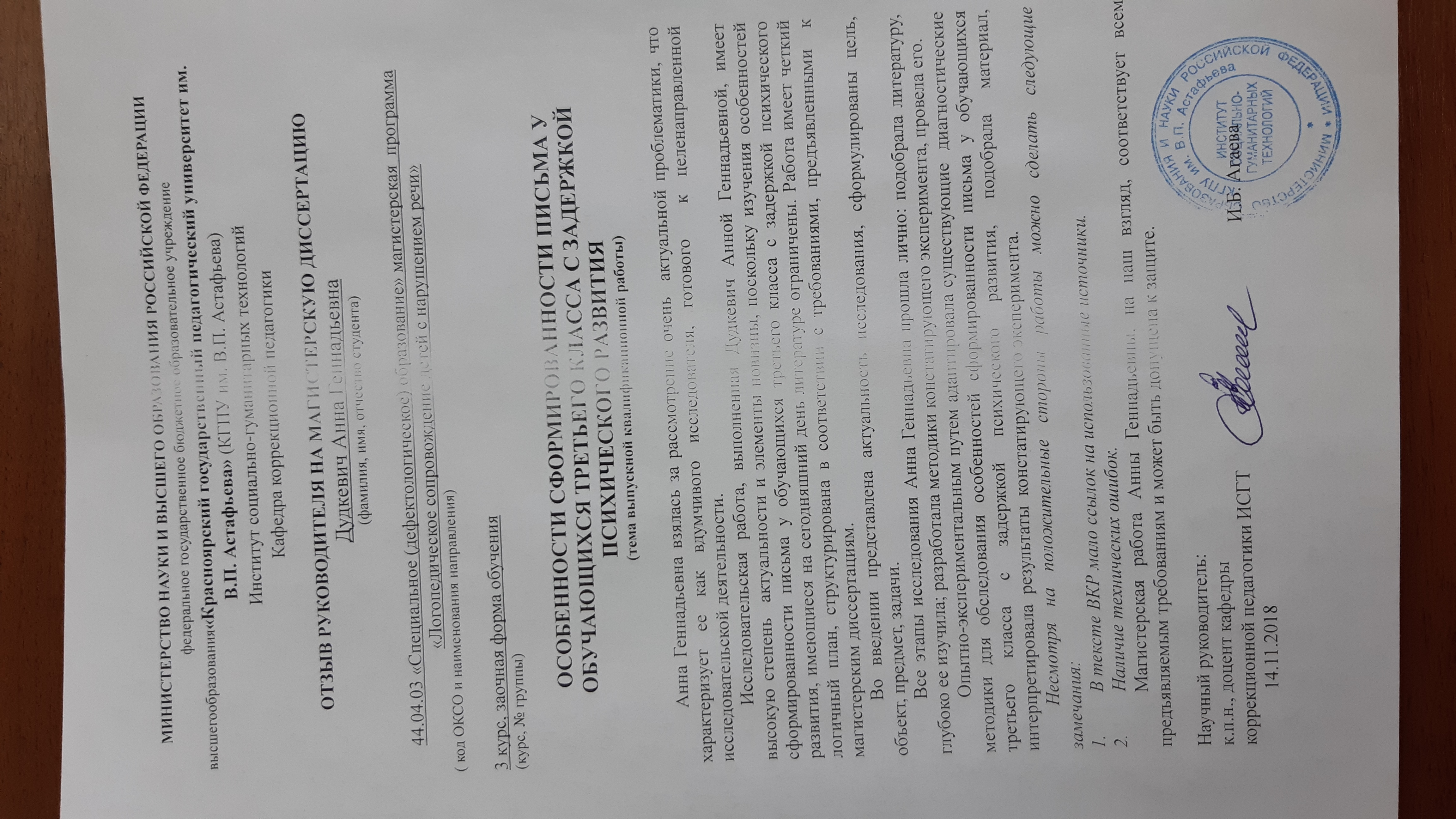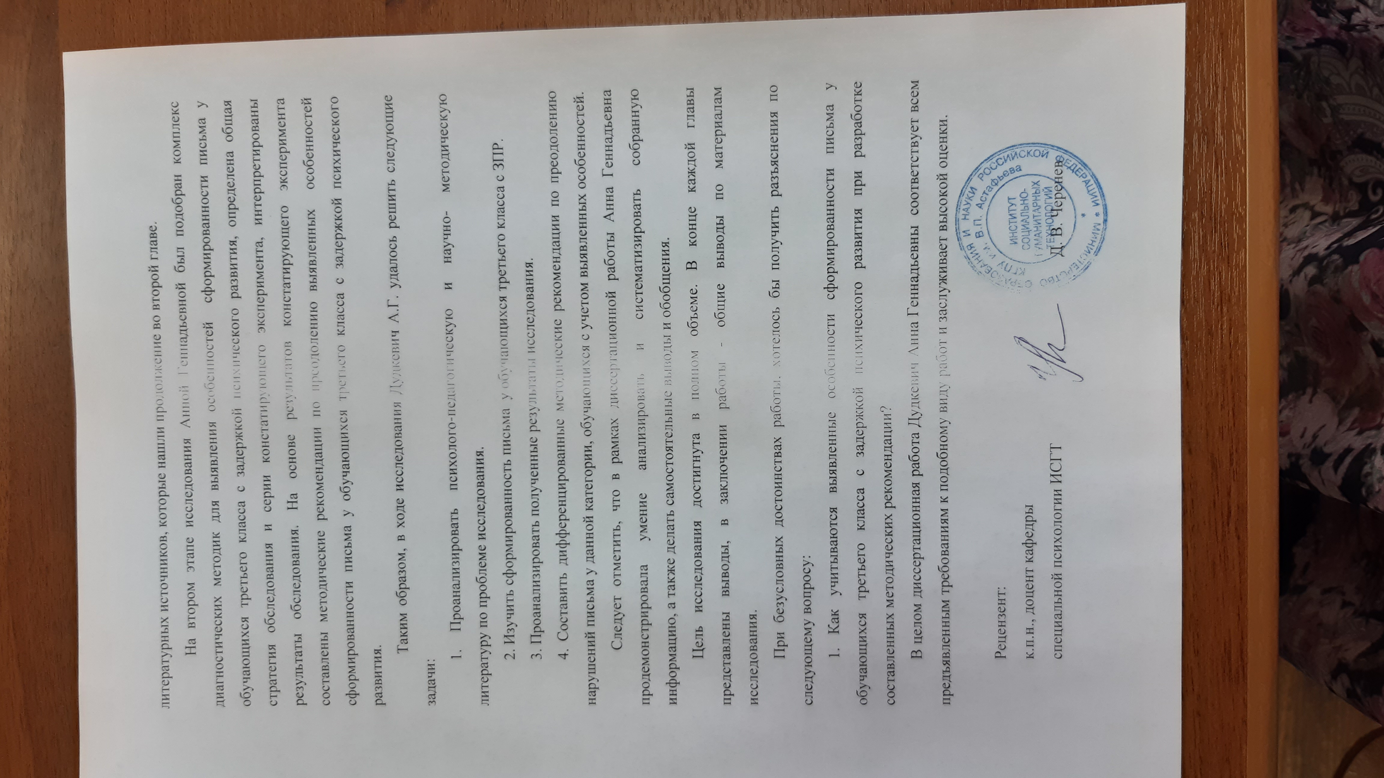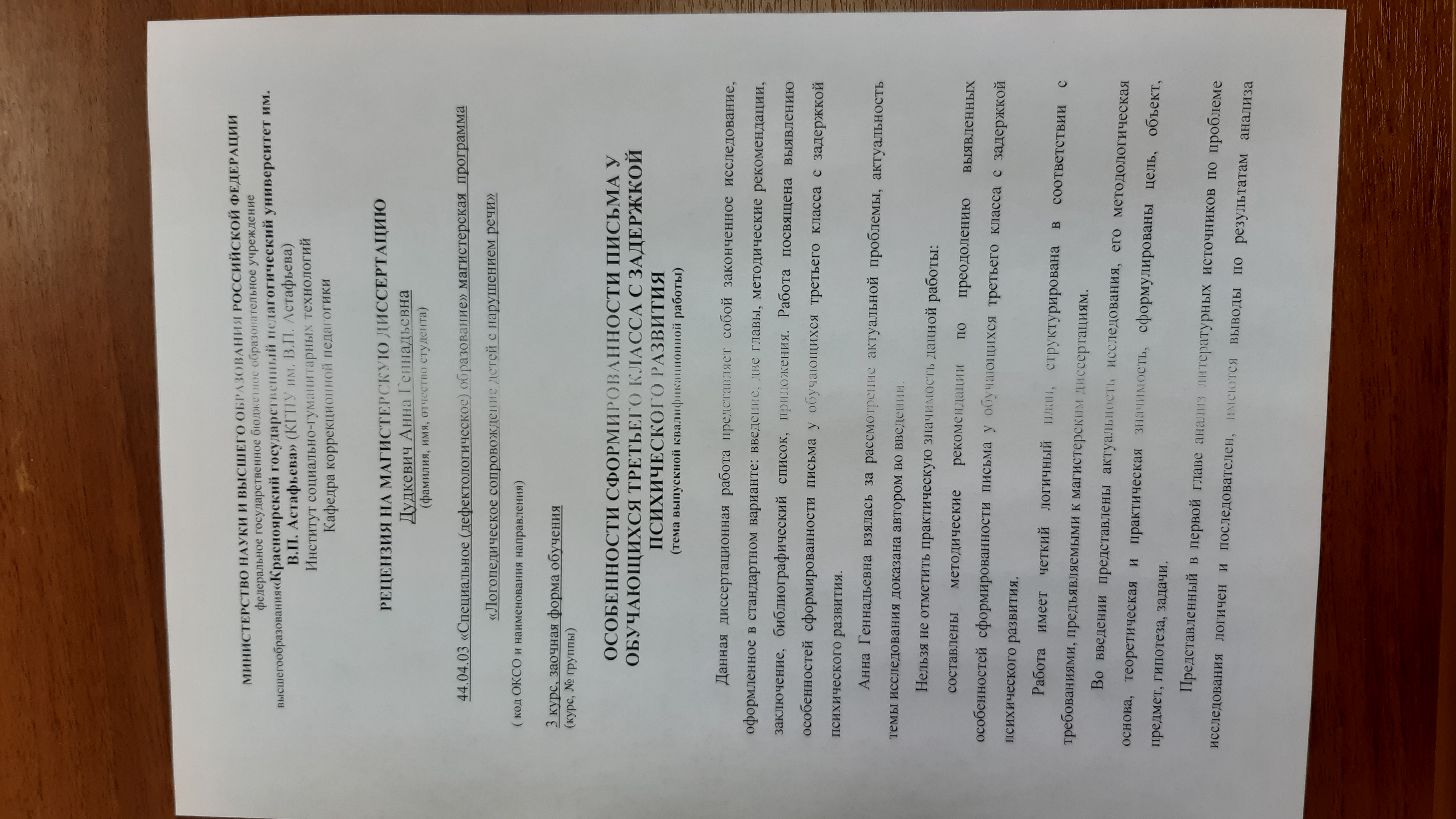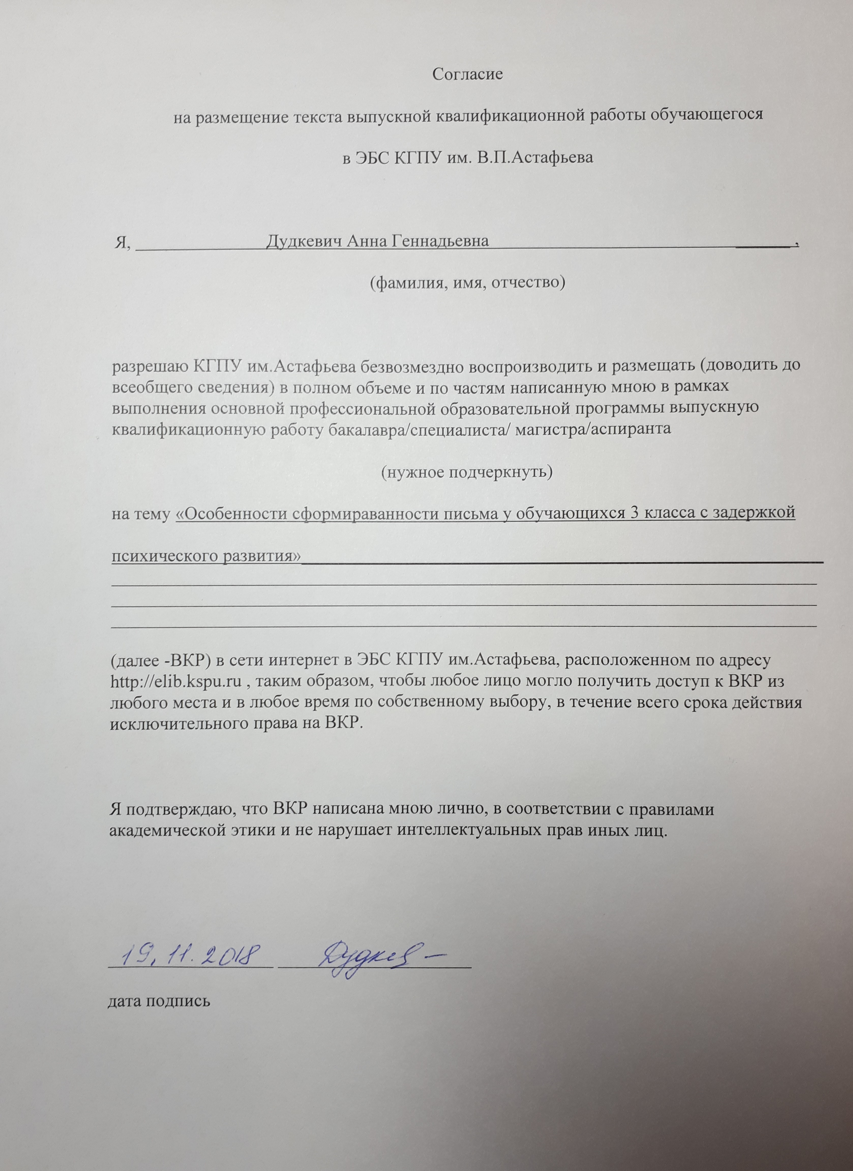 Особенности сформированности письма у обучающихся 3 класса с задержкой психического развития