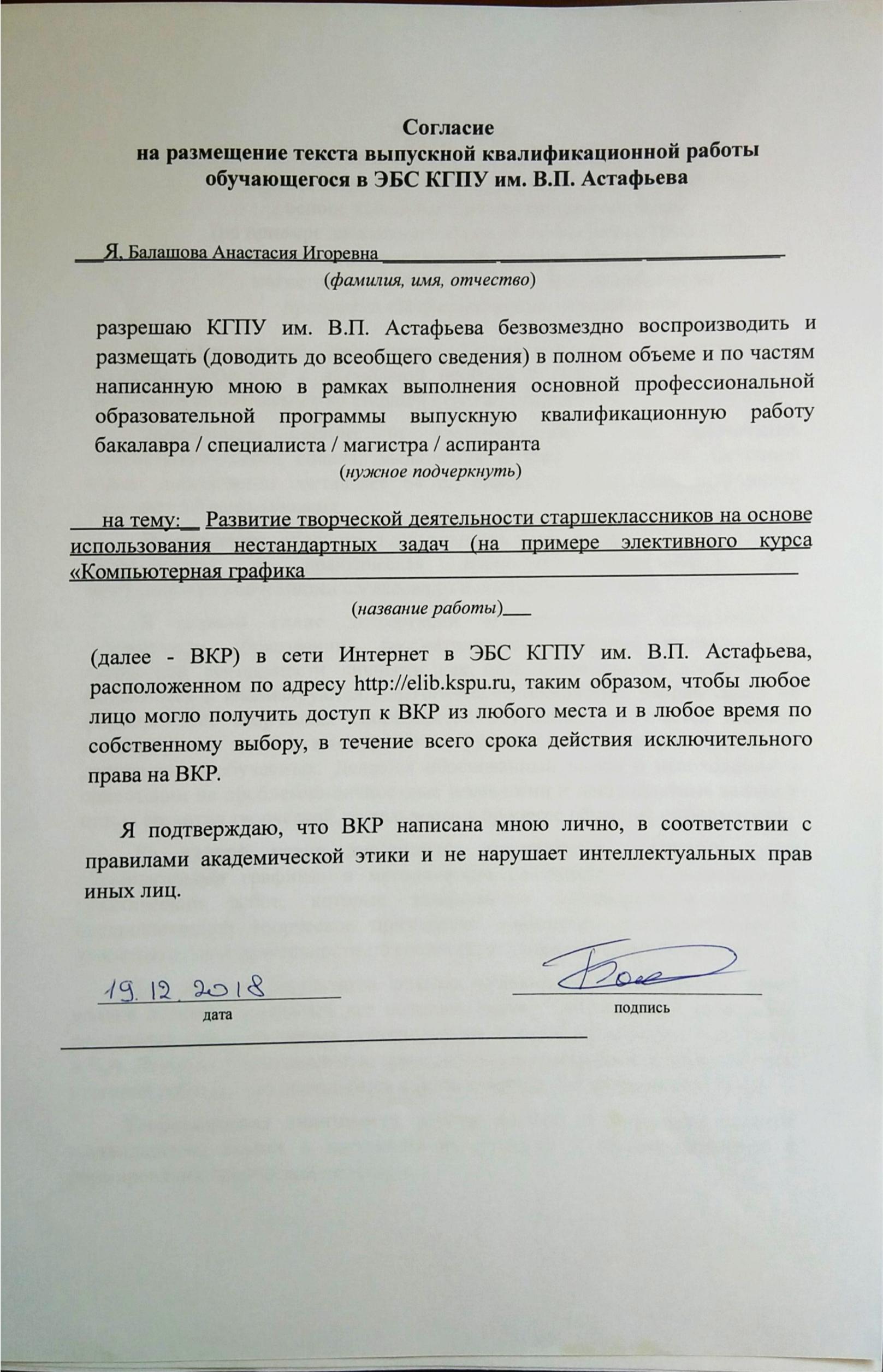 Развитие творческой деятельности старшеклассников на основе использования нестандартных задач на примере элективного курса «Компьютерная графика»