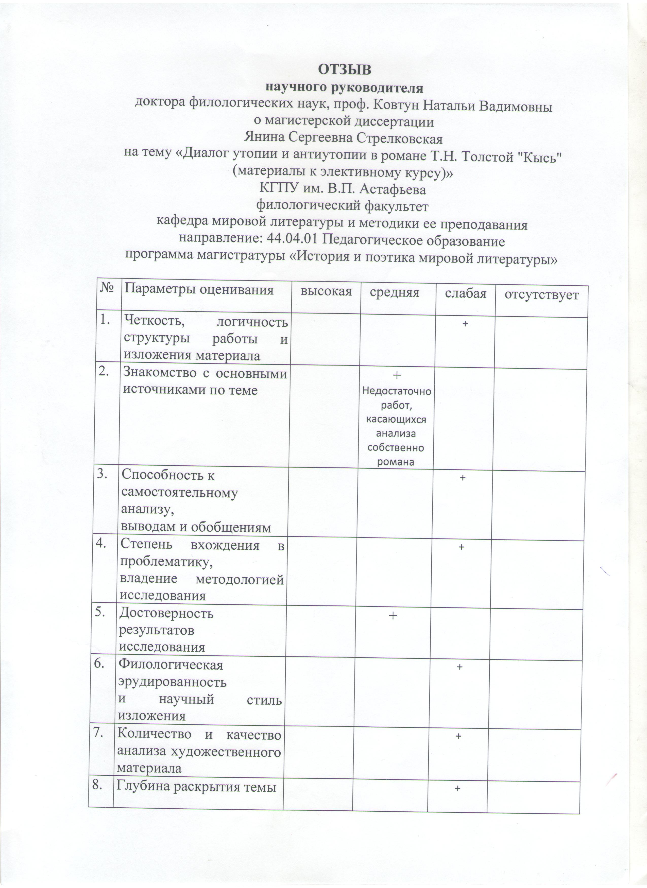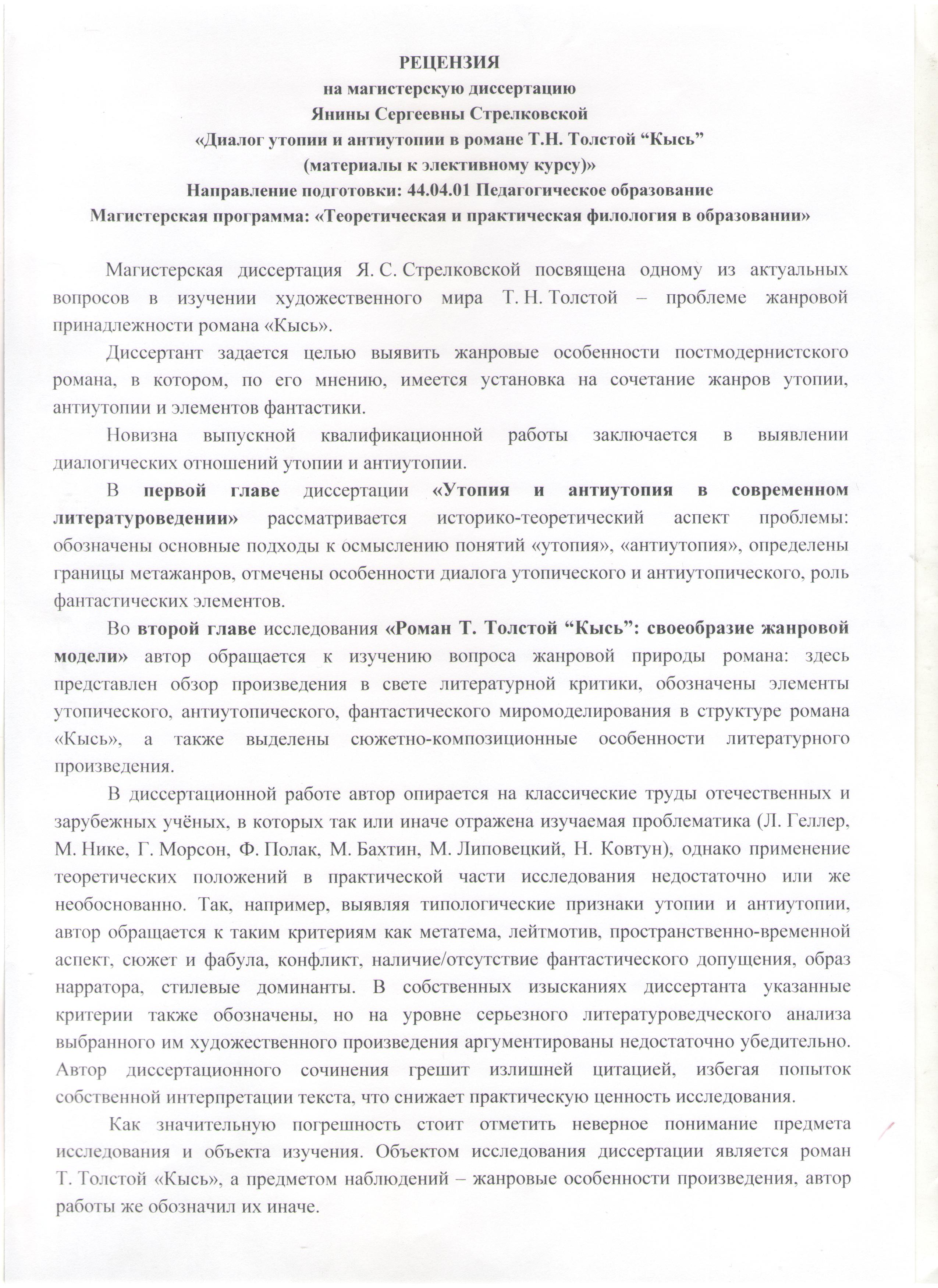 "Диалог" утопии и антиутопии в романе Т.Н. Толстой "Кысь" (материалы к элективному курсу)