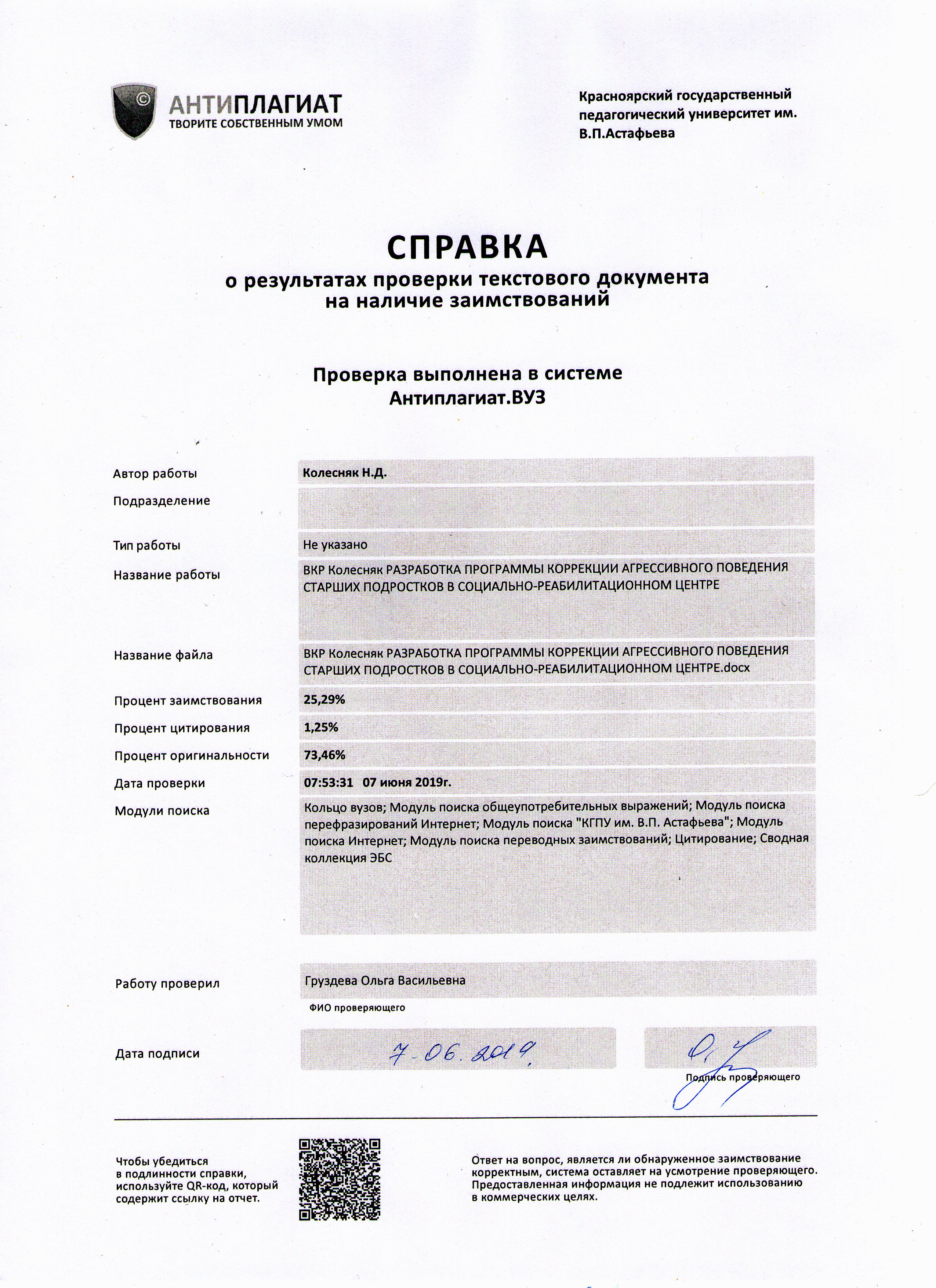 Колесняк Н.Д. Разработка программы коррекции агрессивного поведения старших подростков в социально-реабилитационном центре