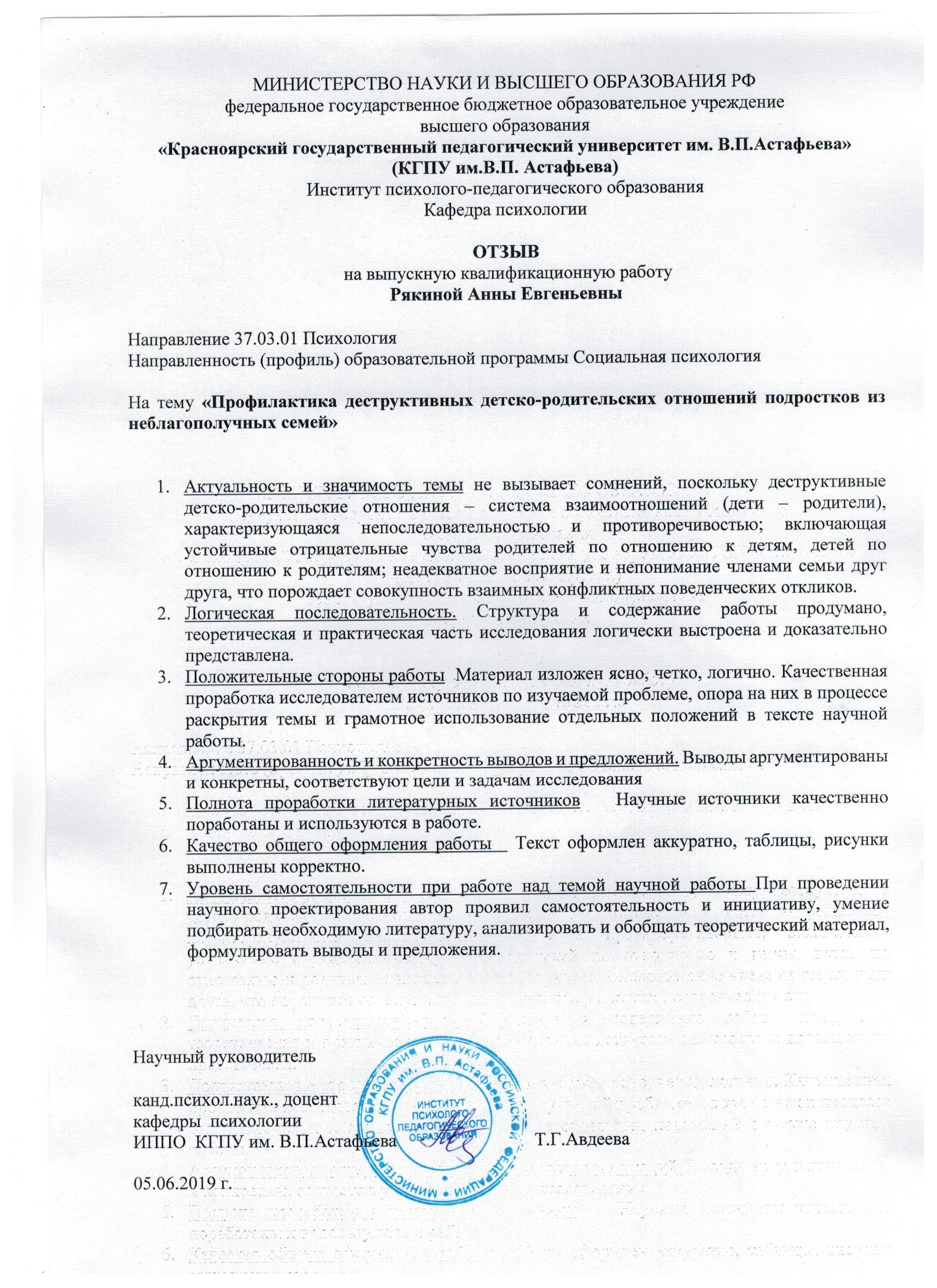 Рякина А.Е. Профилактика деструктивных детско-родительских отношений подростков из неблагополучных семей