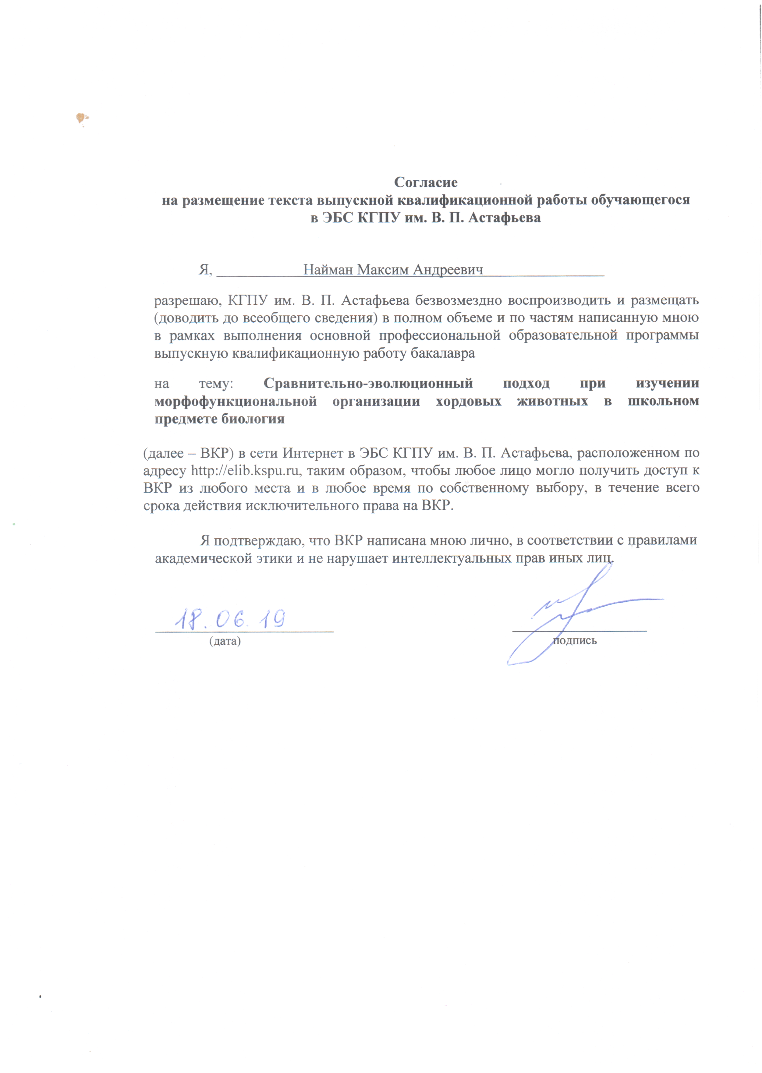Сравнительно-эволюционный подход при изучении морфофункциональной организации хордовых животных в школьном предмете биология