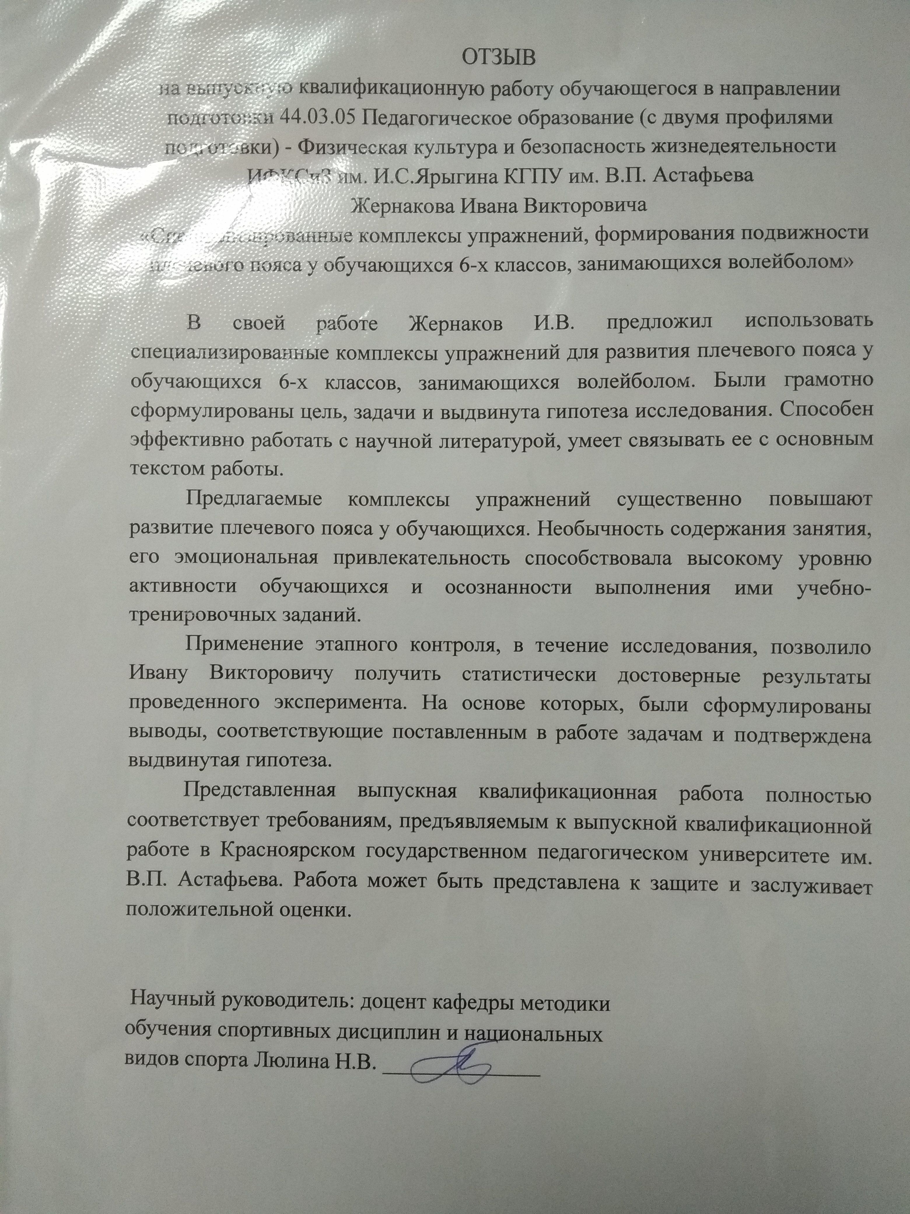 Специализированные комплексы упражнений, формирования подвижности плечевого пояса у обучающихся 6-х классов, занимающихся волейболом