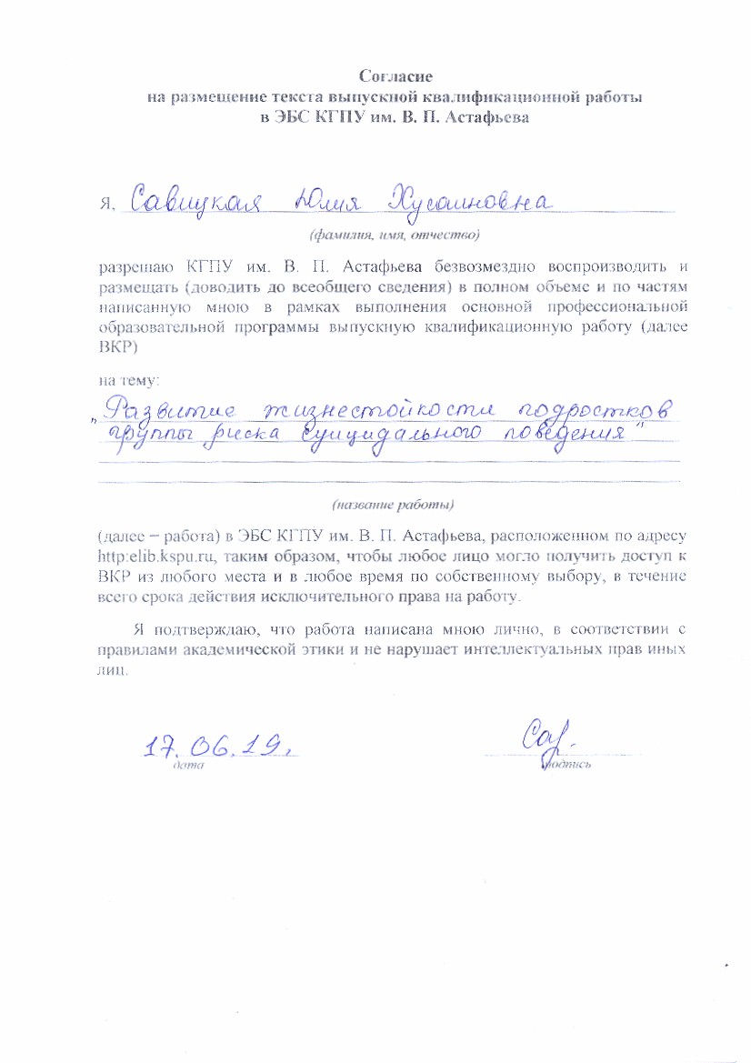 Развитие жизнестойкости подростков группы риска суицидального поведения