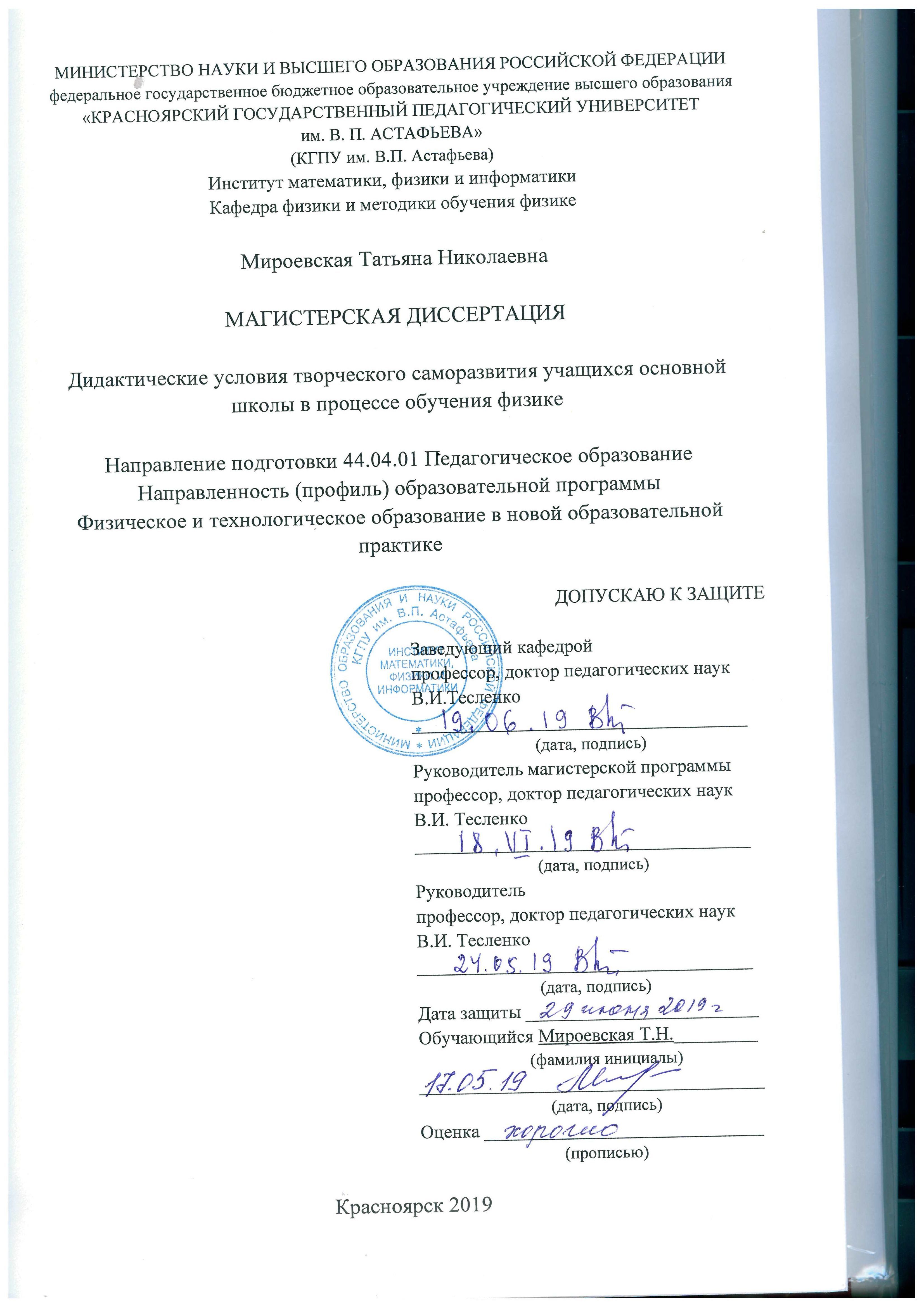 Мироевская_Дидактические условия творческого саморазвития учащихся основной школы в процессе обучения физике