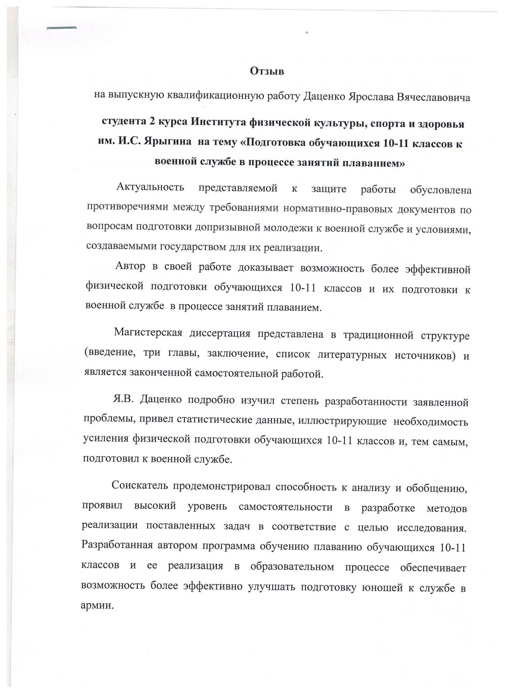 Подготовка обучающихся 10-11 классов к военной службе в процессе занятий плаванием