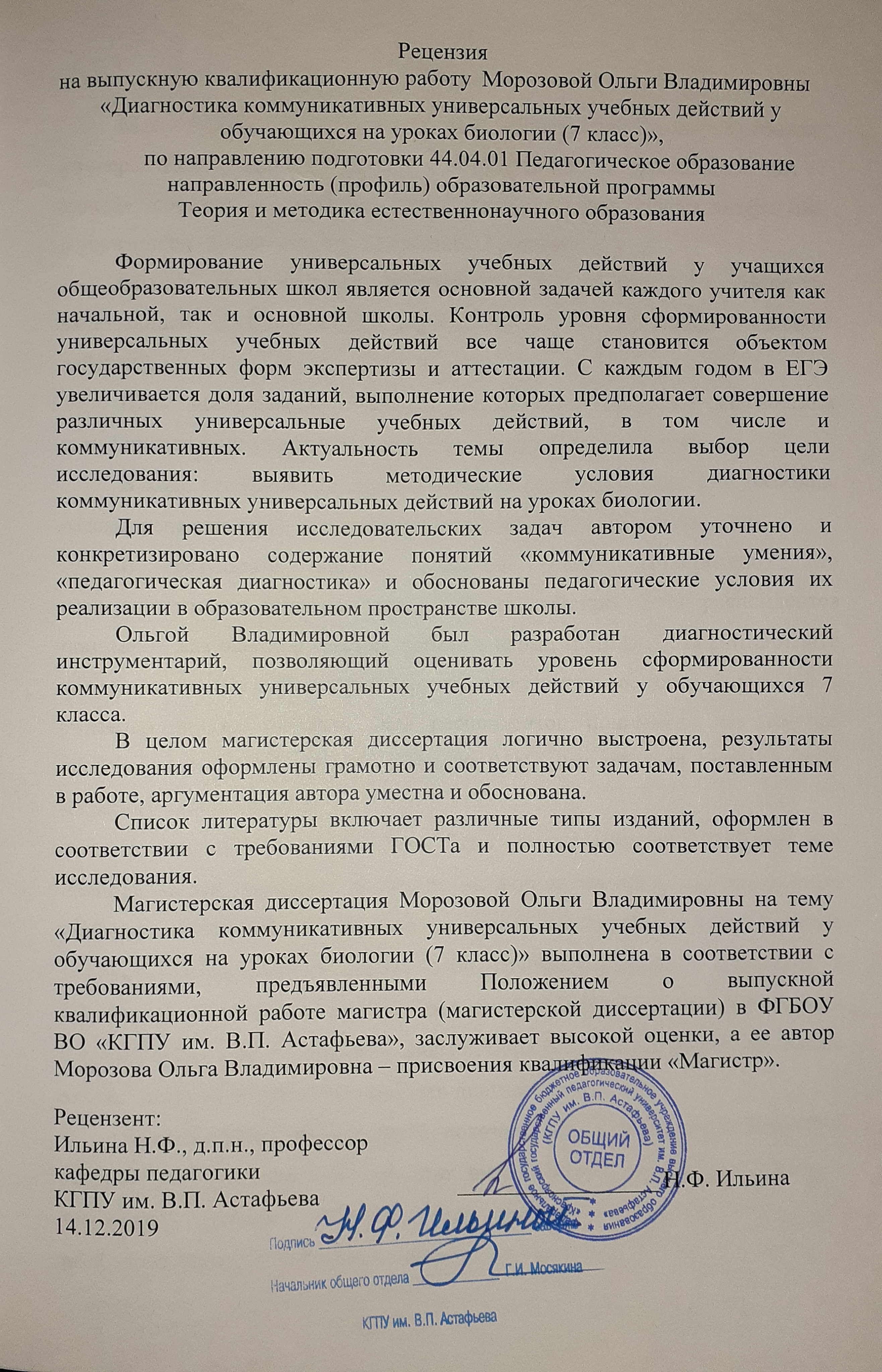 ДИАГНОСТИКА КОММУНИКАТИВНЫХ УНИВЕРСАЛЬНЫХ УЧЕБНЫХ ДЕЙСТВИЙ У ОБУЧАЮЩИХСЯ НА УРОКАХ БИОЛОГИИ (7 КЛАСС)
