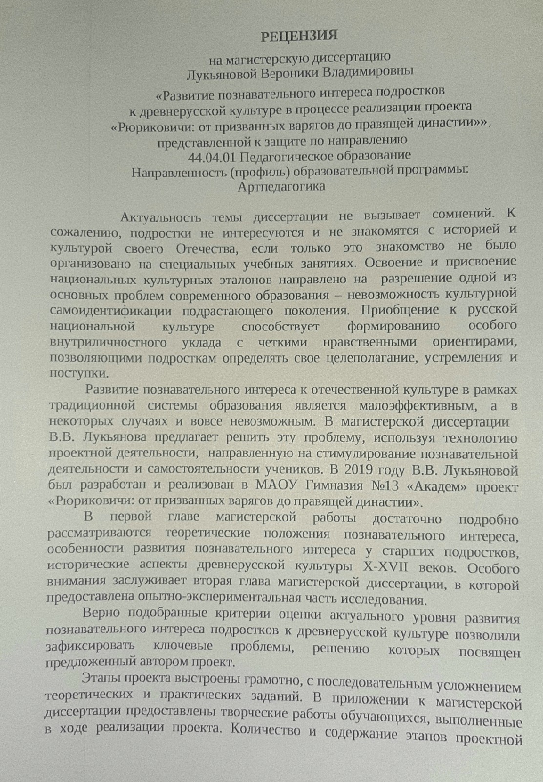 Развитие познавательного интереса подростков к древнерусской культуре в процессе реализации проекта "Рюриковичи: от призванных варягов до призванной династии"