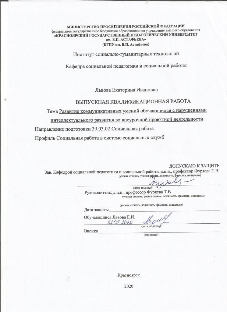 Развитие коммуникативных умений обучающихся с нарушениями интеллектуального развития во внеурочной проектной деятельности