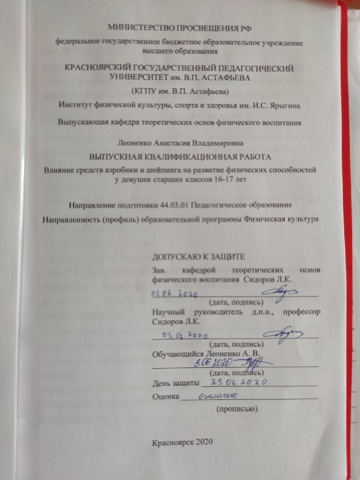 Влияние средств аэробики и шейпинга на развитие физических способностей у девушек старших классов 16-17 лет