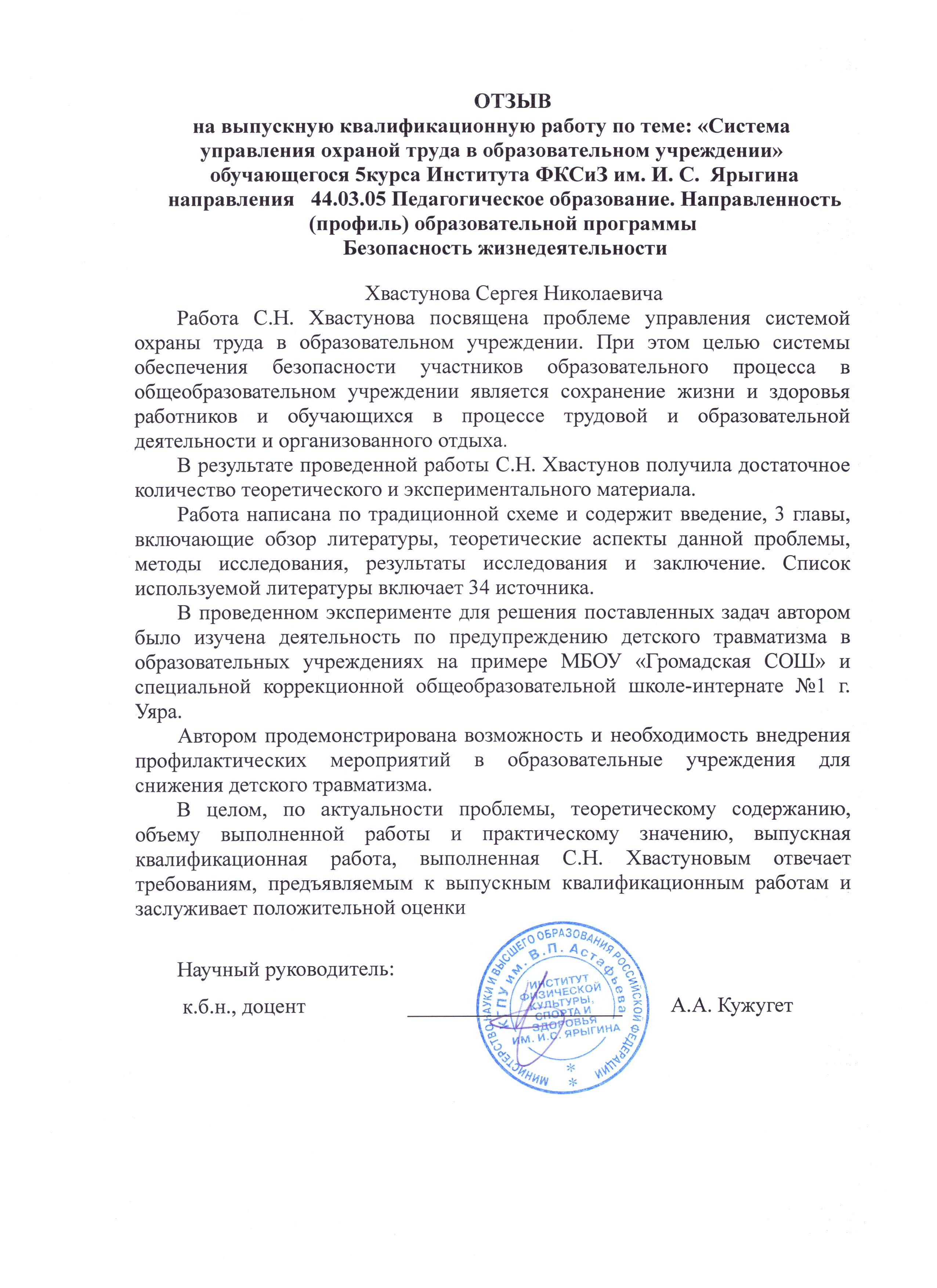 Влияние на безопасность жизнедеятельности системы управления охраной труда в образовательном учреждении.