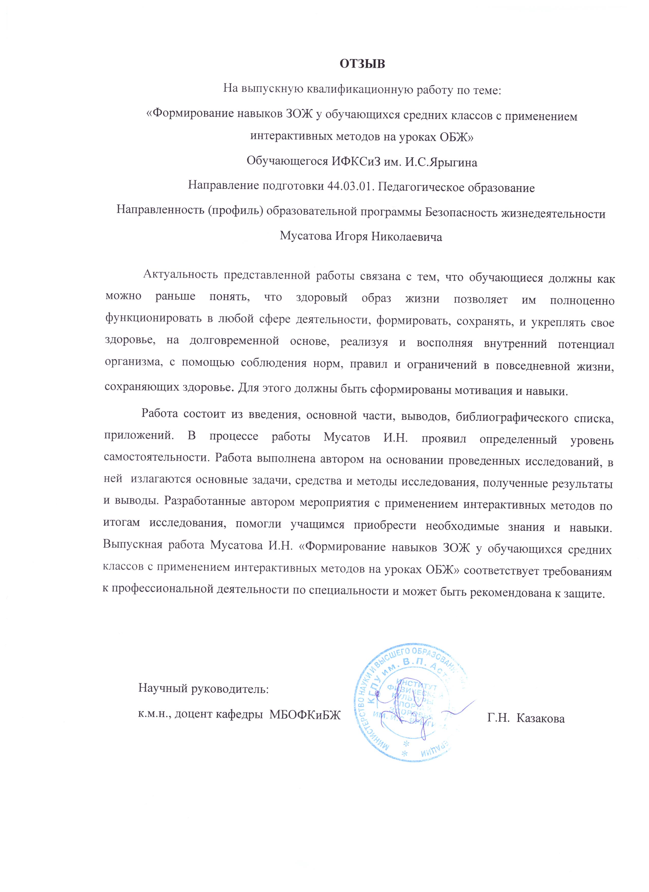 Формирование навыков ЗОЖ у обучающихся средних классов с применением интерактивных методов на уроках ОБЖ