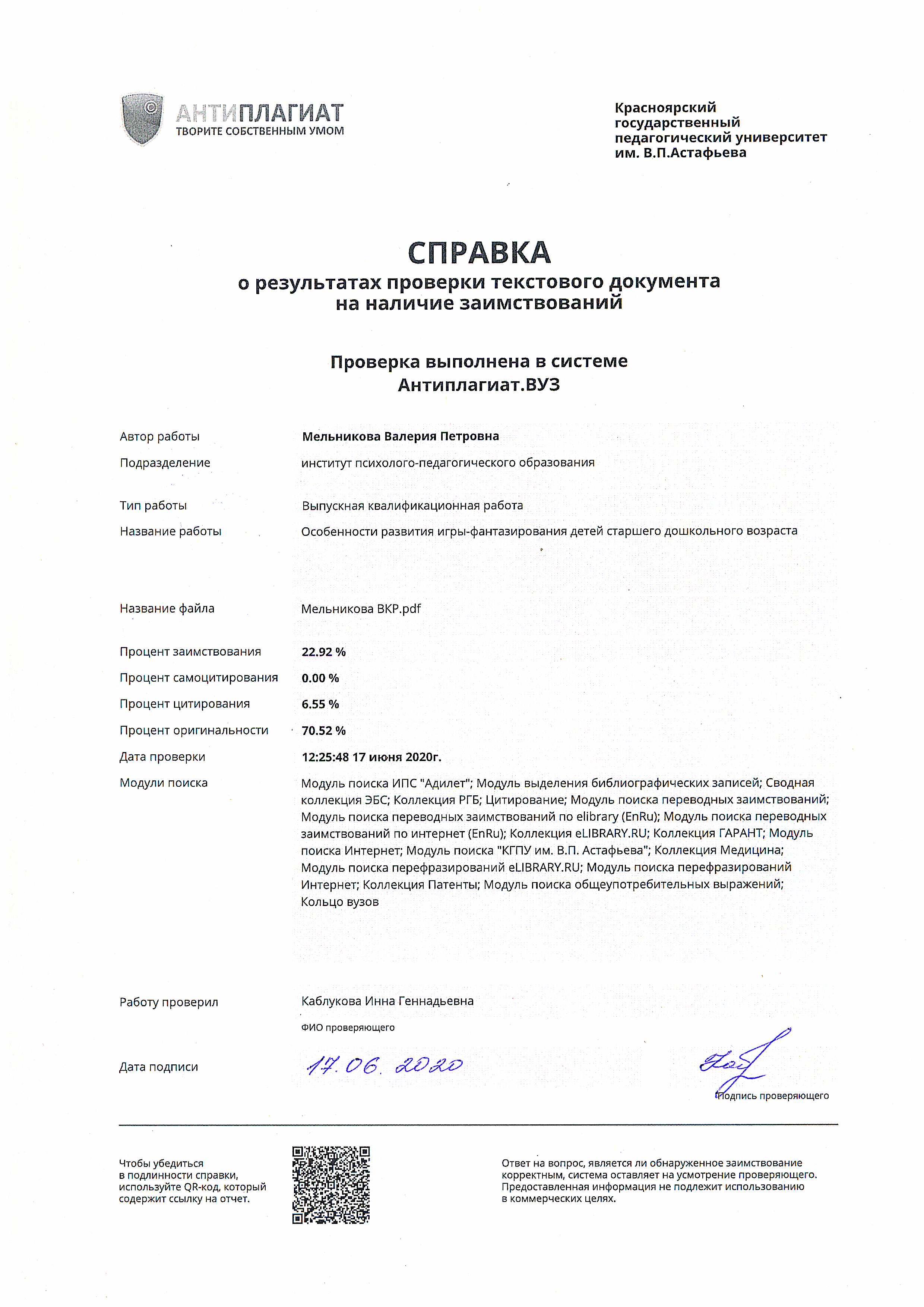 Мельникова В.П. Особенности развития игры-фантазирования детей старшего дошкольного возраста