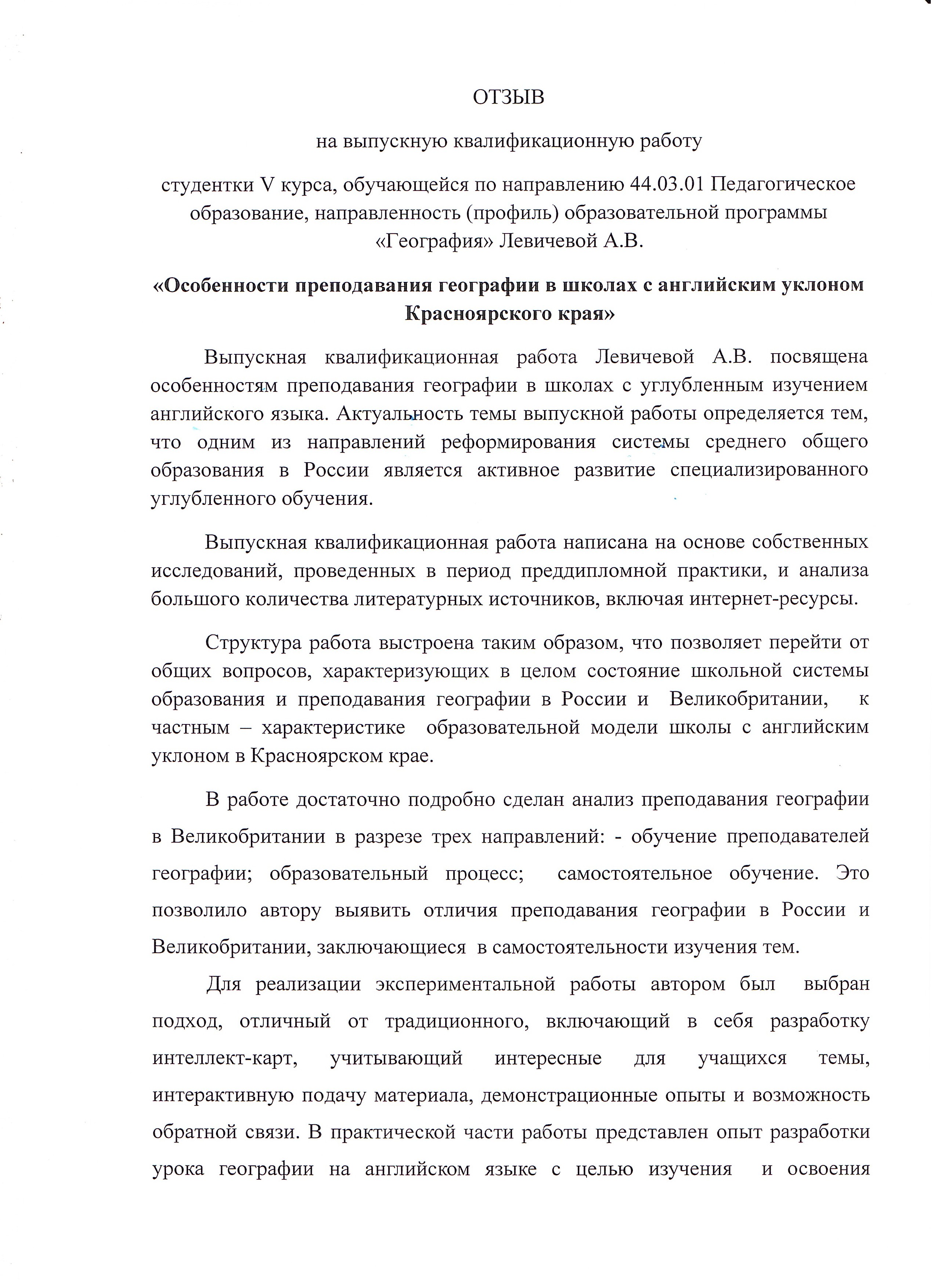 Особенности преподавания географии в школах с английским уклоном в школах Красноярского края