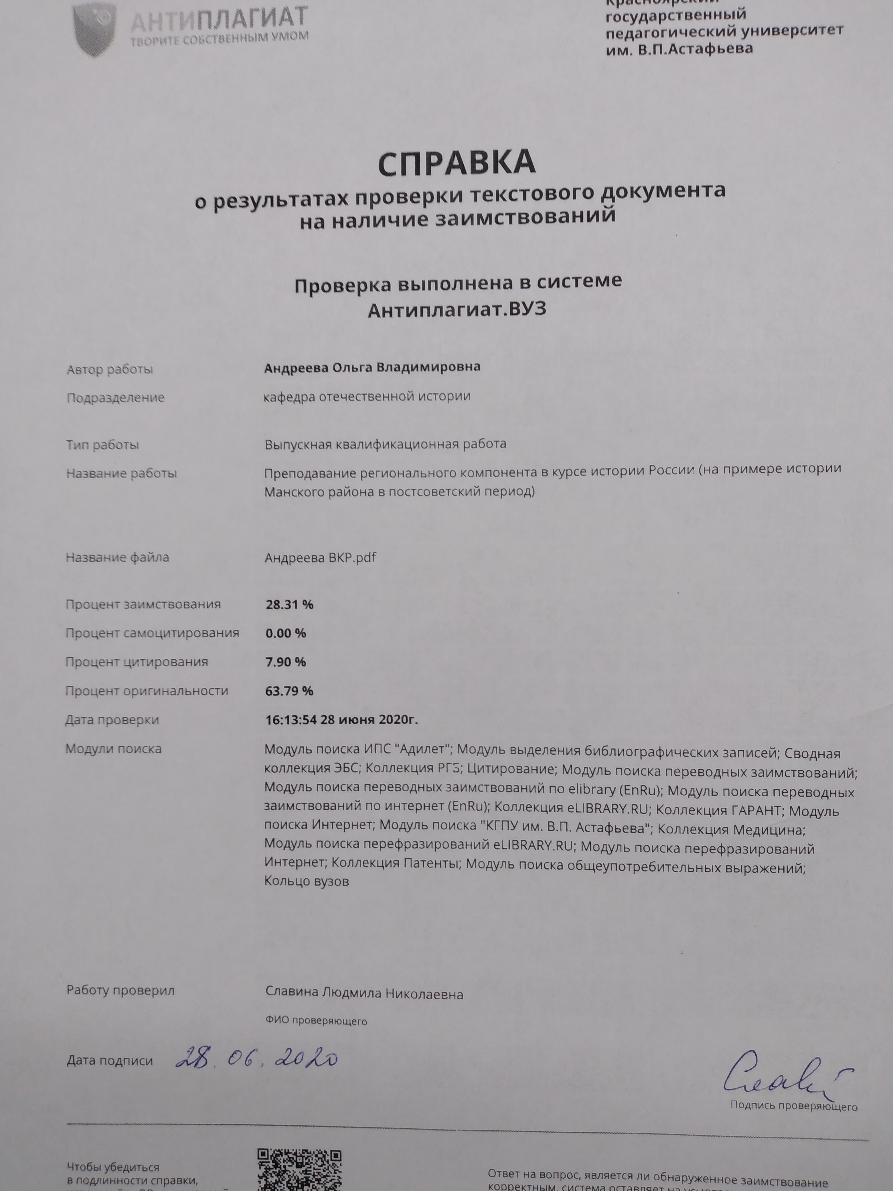 Преподавание регионального компонента в курсе истории России (на примере истории Манского района)